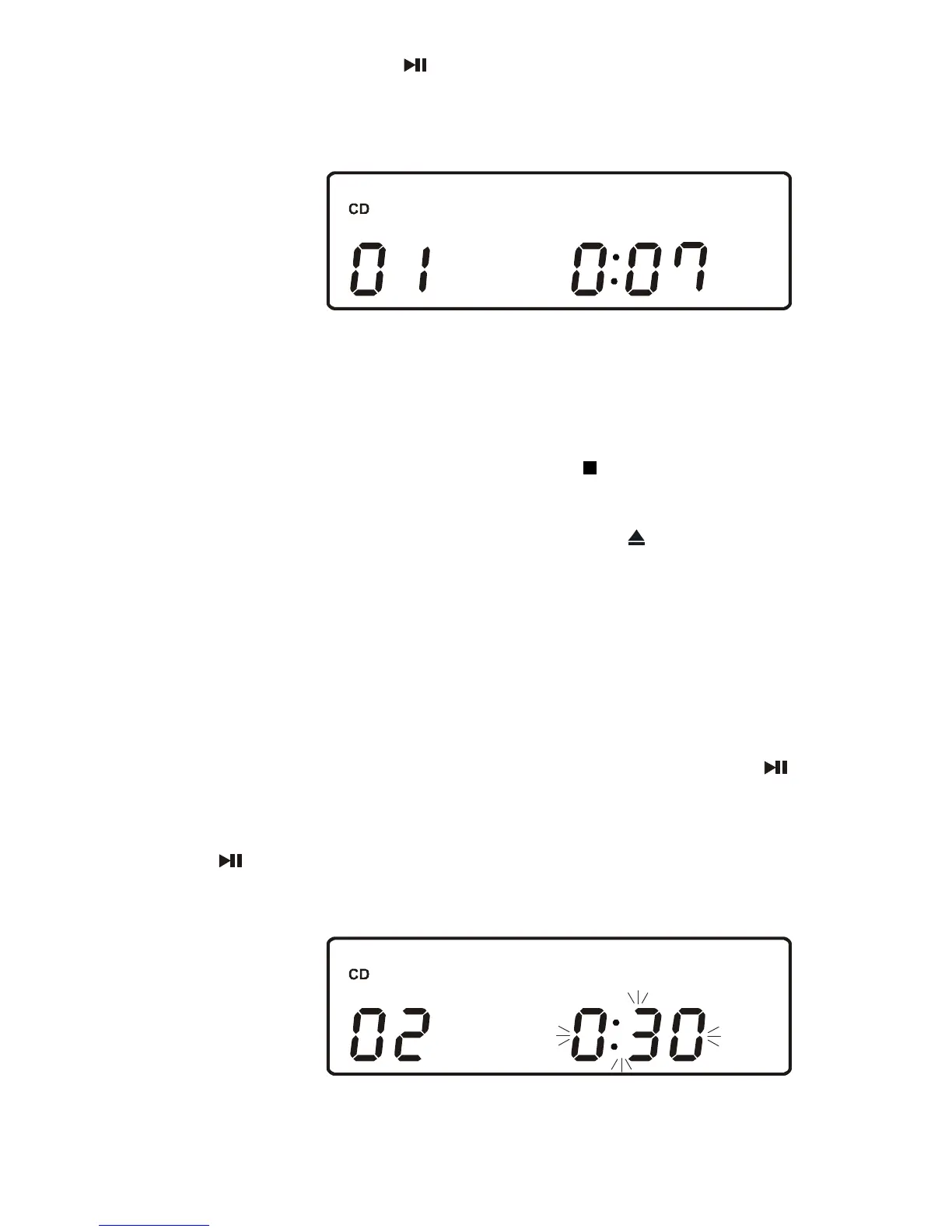 To temperately pause during CD playback, press the PLAY/PAUSE button on