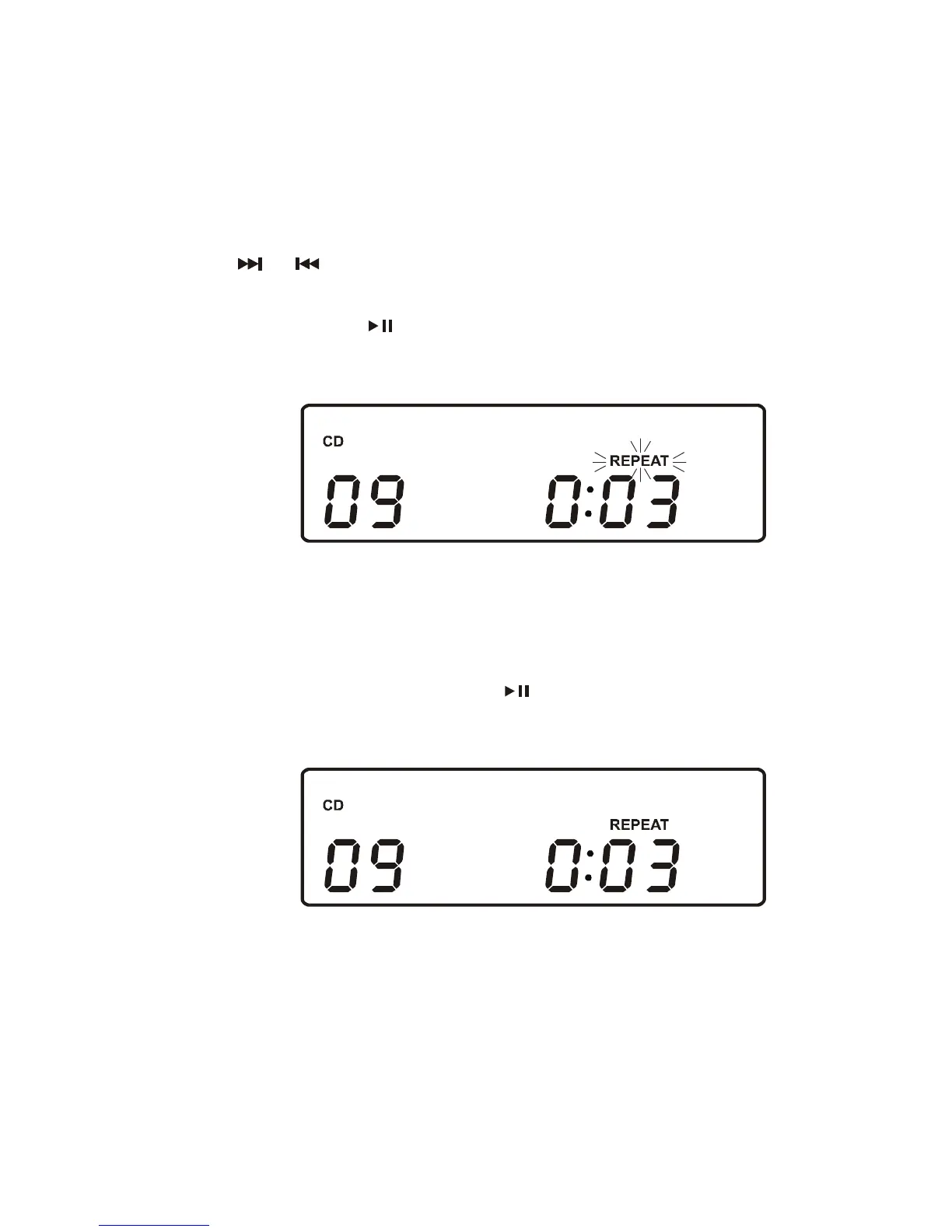 press the REPEAT button once. The REPEAT indicator flashes in the display.