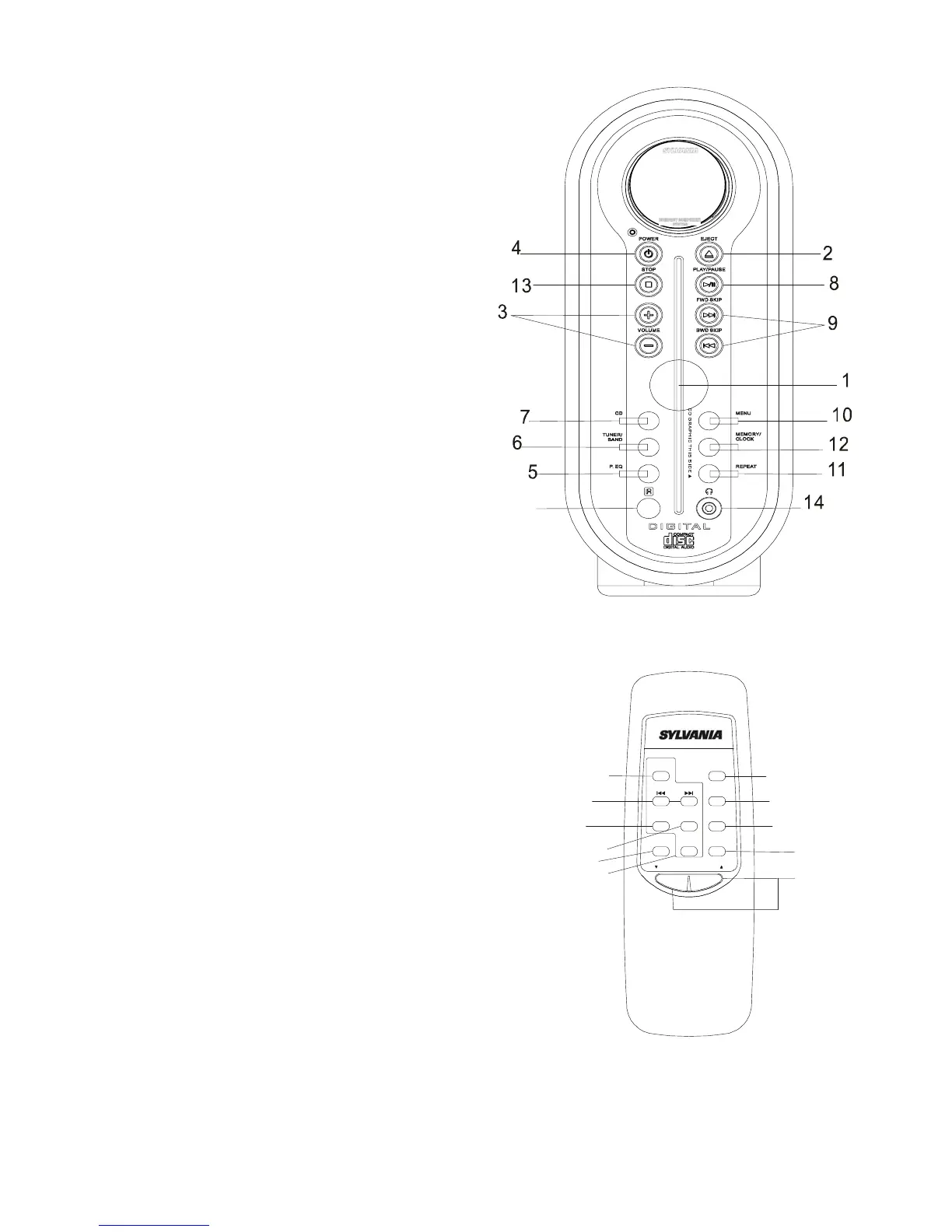 Sylvania SRCD909 - Control Identification; Main Unit Controls; Remote Control Layout
