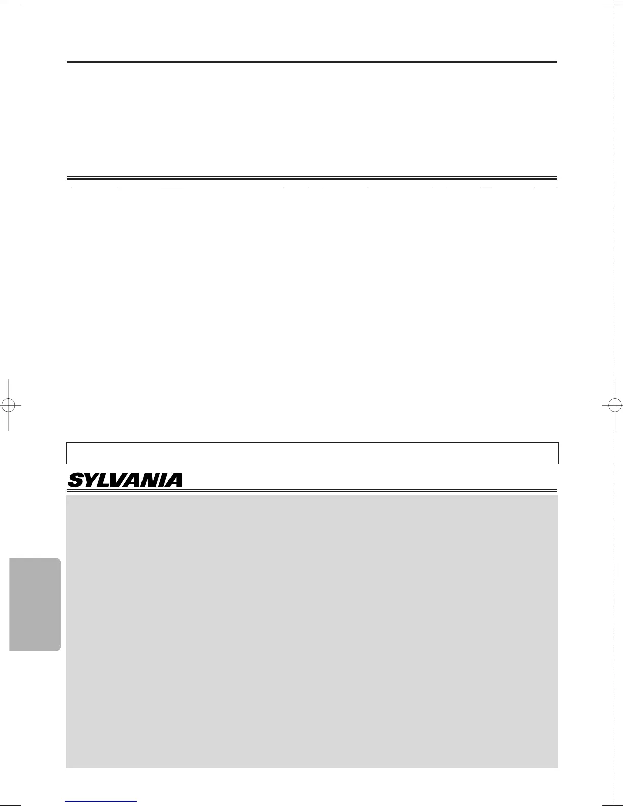 thorized service center. This SYLVANIA Limited warranty does not apply to