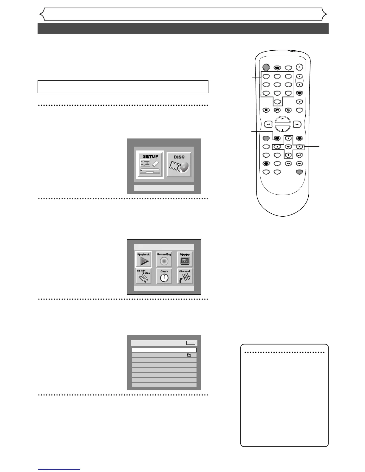 Press SETUP button to display SETUP/DISC menu.