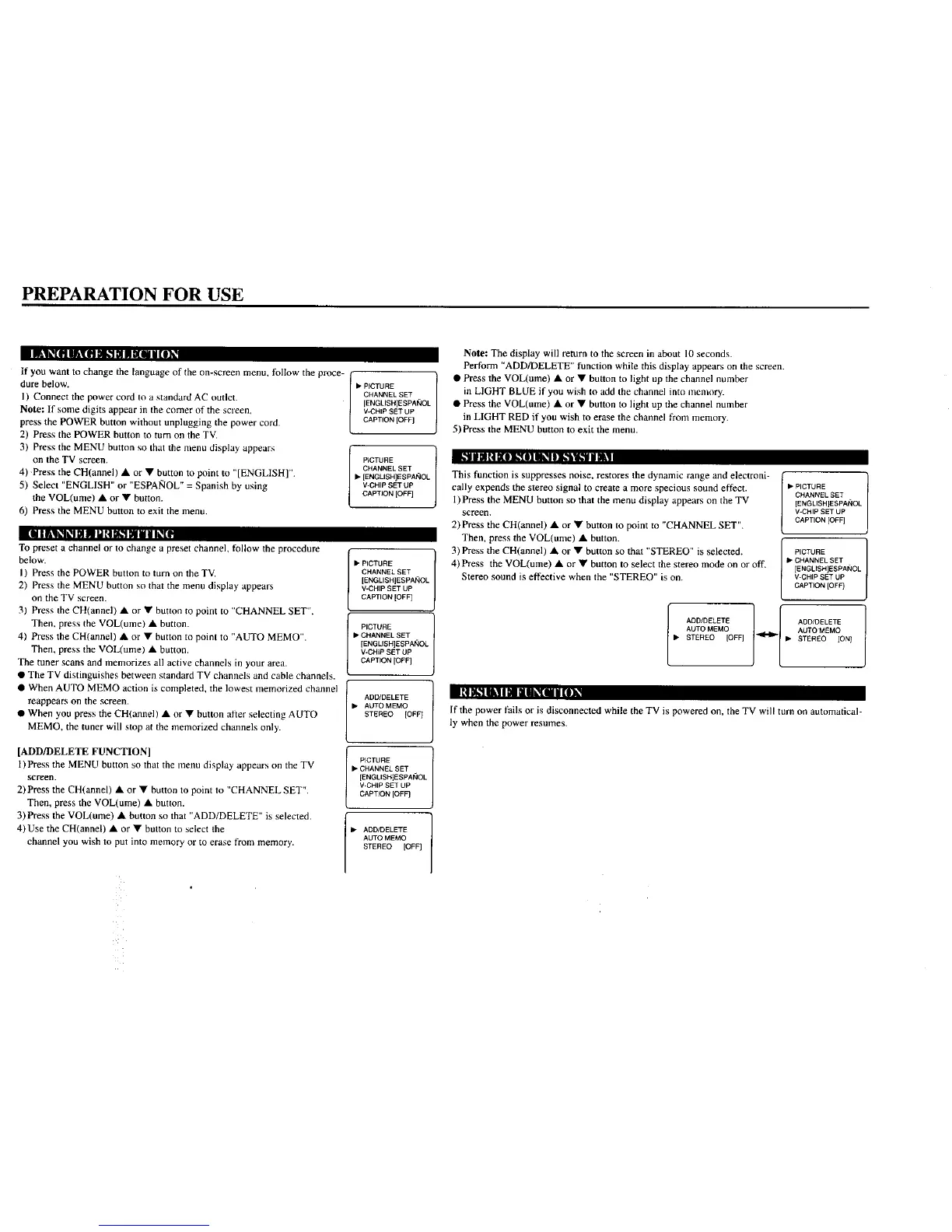 3) Press the CH(annel) • or • button so that "STEREO" is selected.