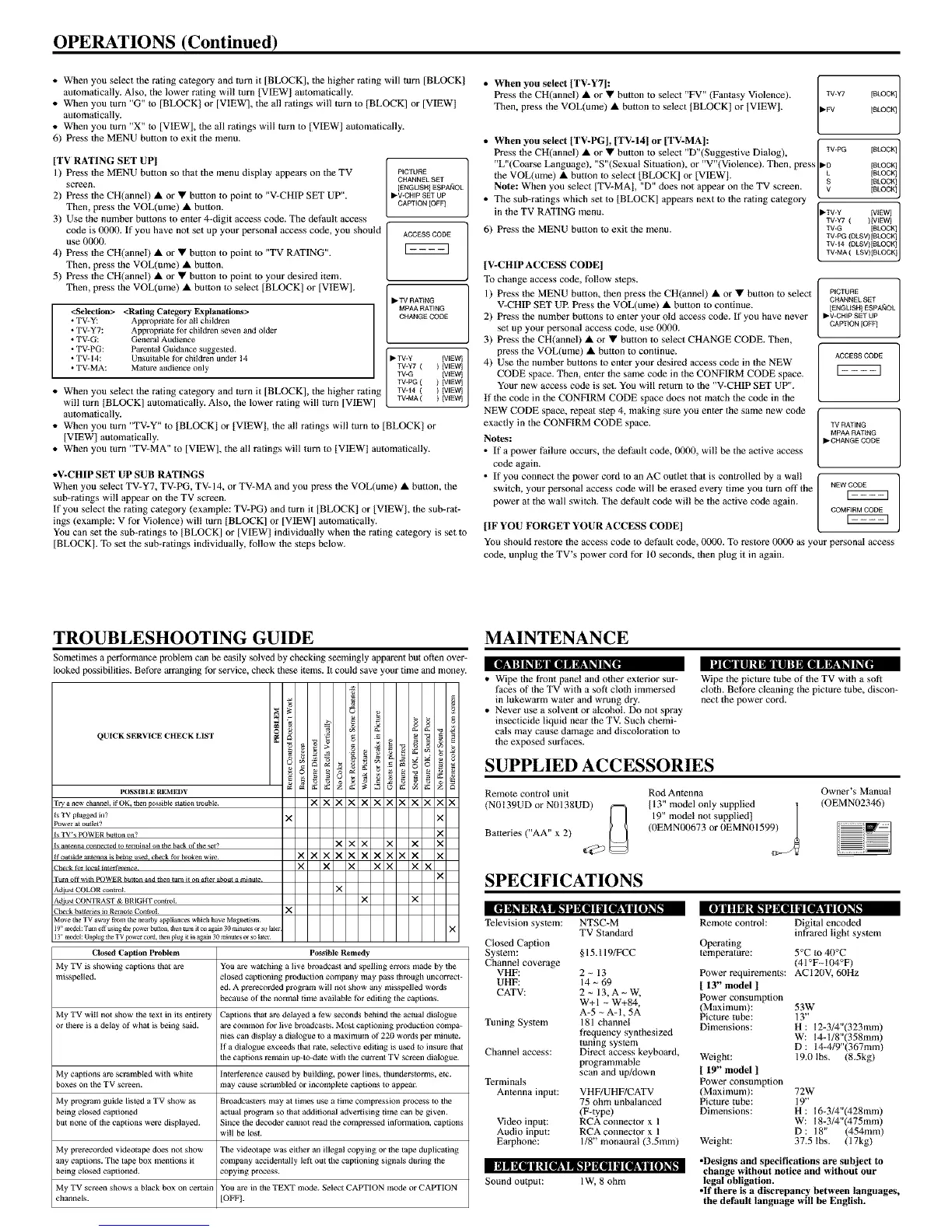 • When you turn "TV-Y" to [BLOCK] or [VIEW], the all ratings will torn to [BLOCK] or