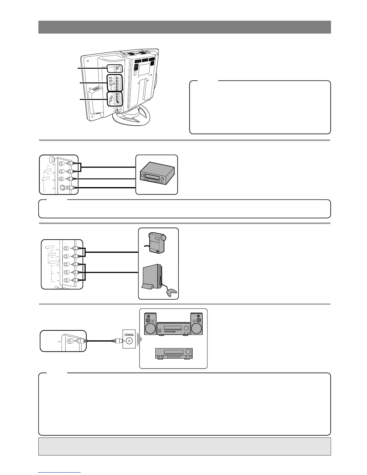 Si su propio equipo es monofónico (sólo tiene una toma de audio), conecte el cable de audio a la toma AUDIO L de esta unidad.