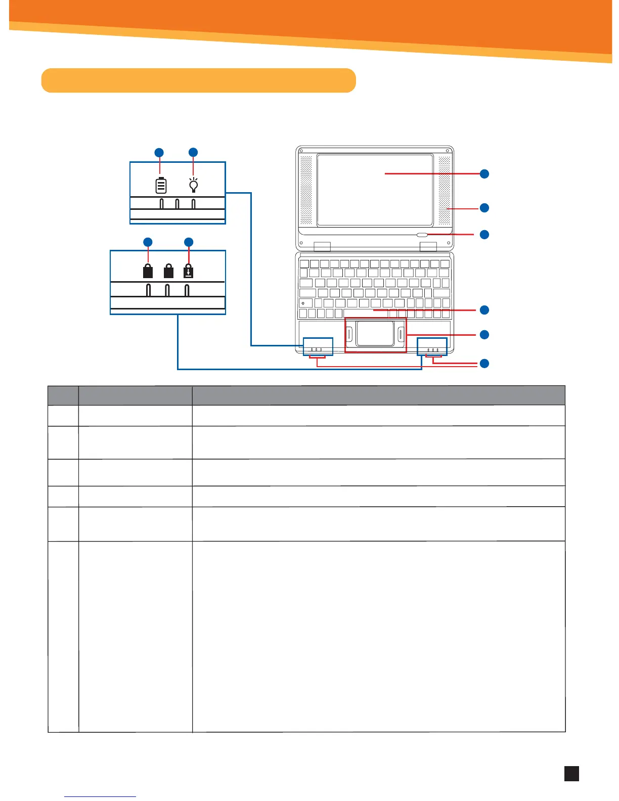 b) Power indication lamp: When your Netbook is in use, the power indication lamp