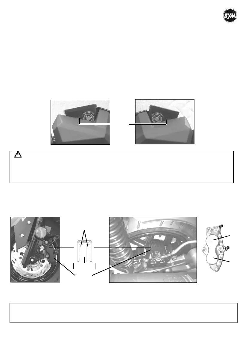 something wrong when applying the brakes, have the brake system checked by an authorized SYM dealer.
