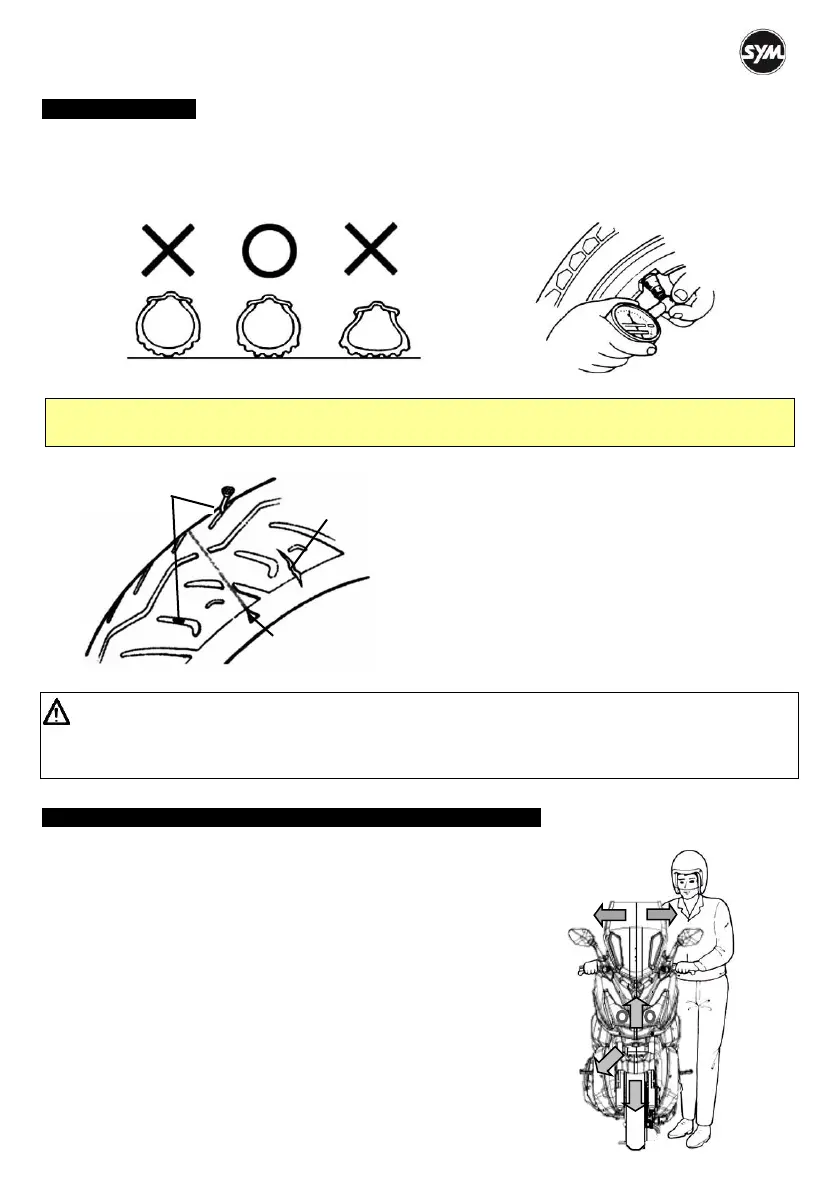 Tires’ pressure must be checked with an air pressure gauge when cold.