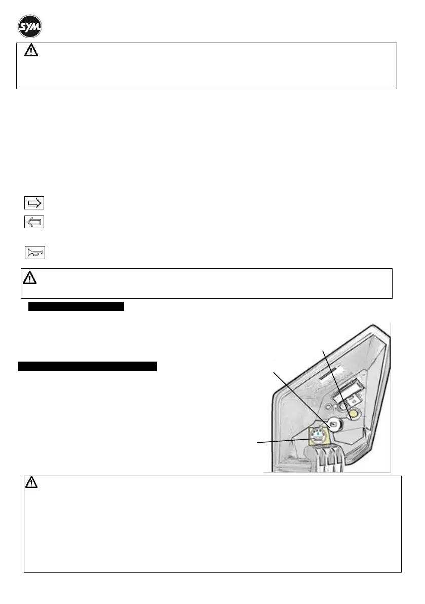 Établir le contact puis appuyer sur ce bouton. Le feu de route s’allume immédiatement pour avertir le