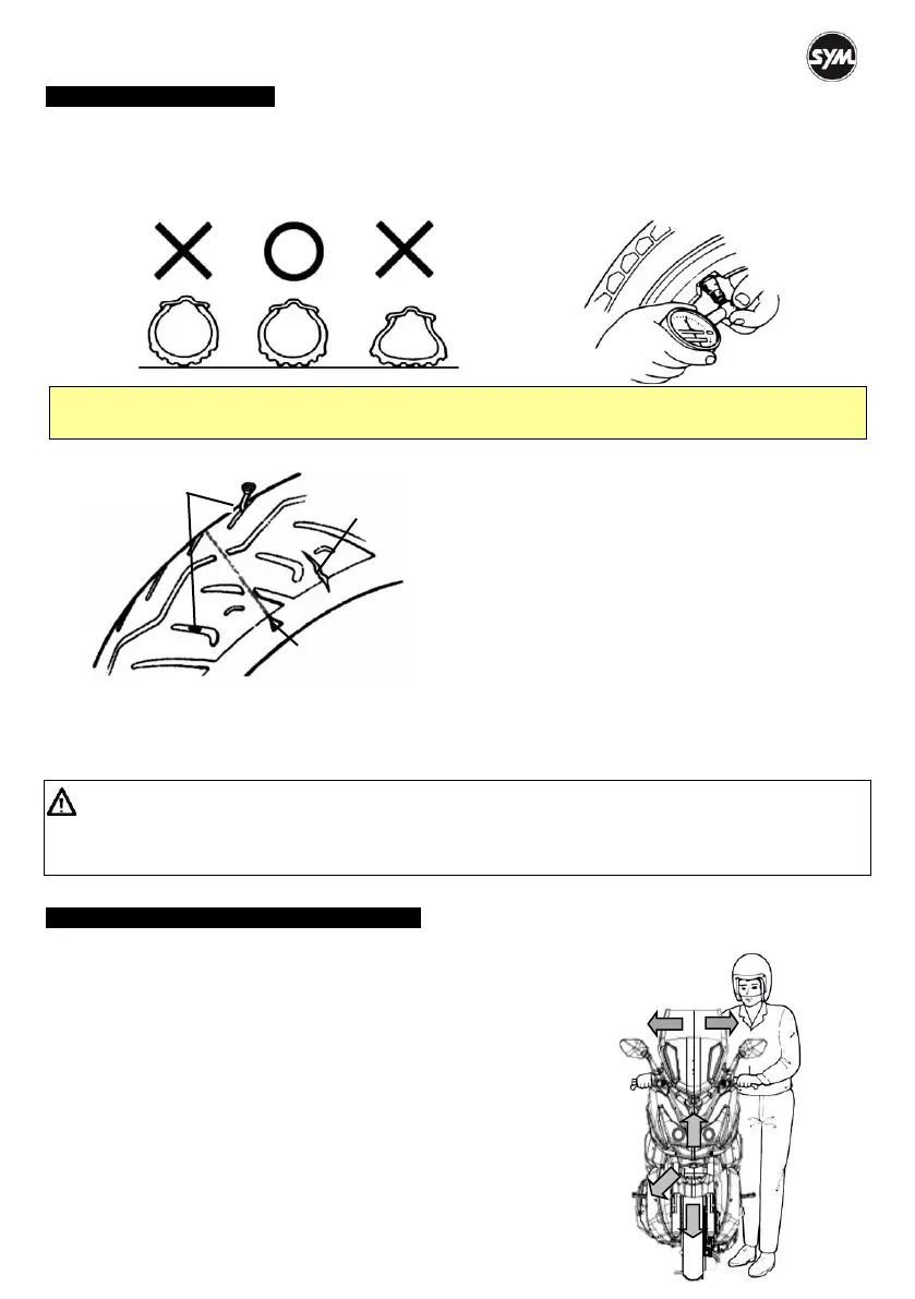 Appuyer sur le guidon de haut en bas et rechercher d'éventuels