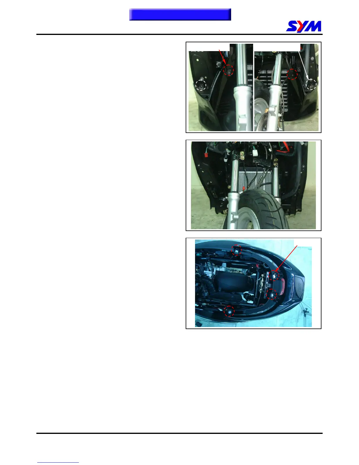 Loosen 2 screw and 2 bolts from the front under