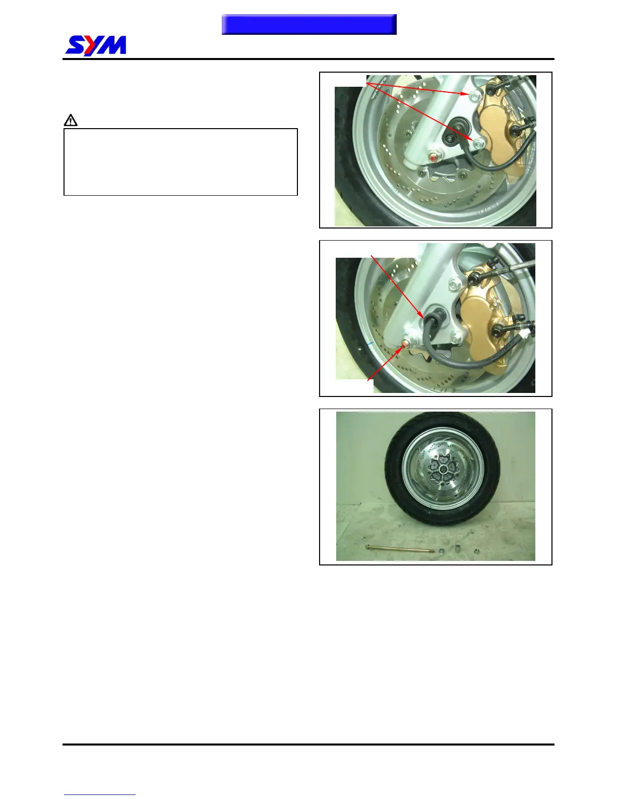 Loosen 2 bolts from the front brake caliper and