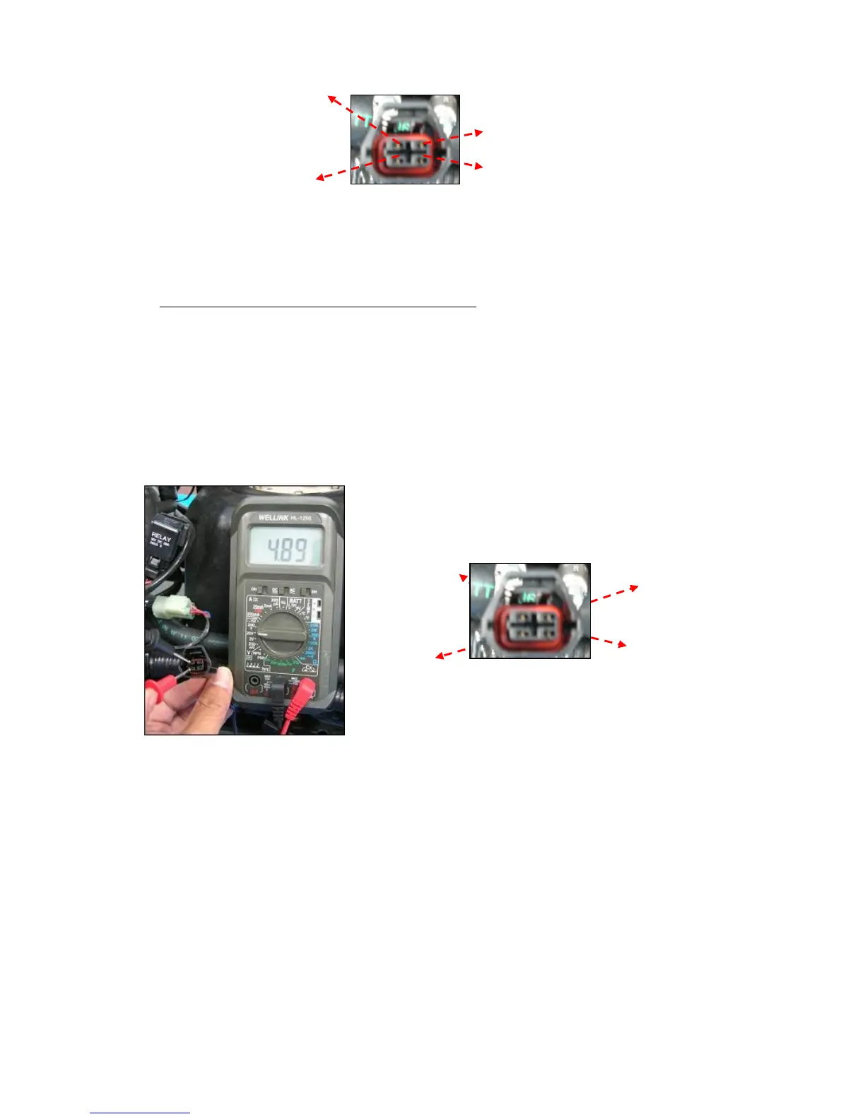 c). Use the electric meter DCV function to check the working voltage of fuel pump.