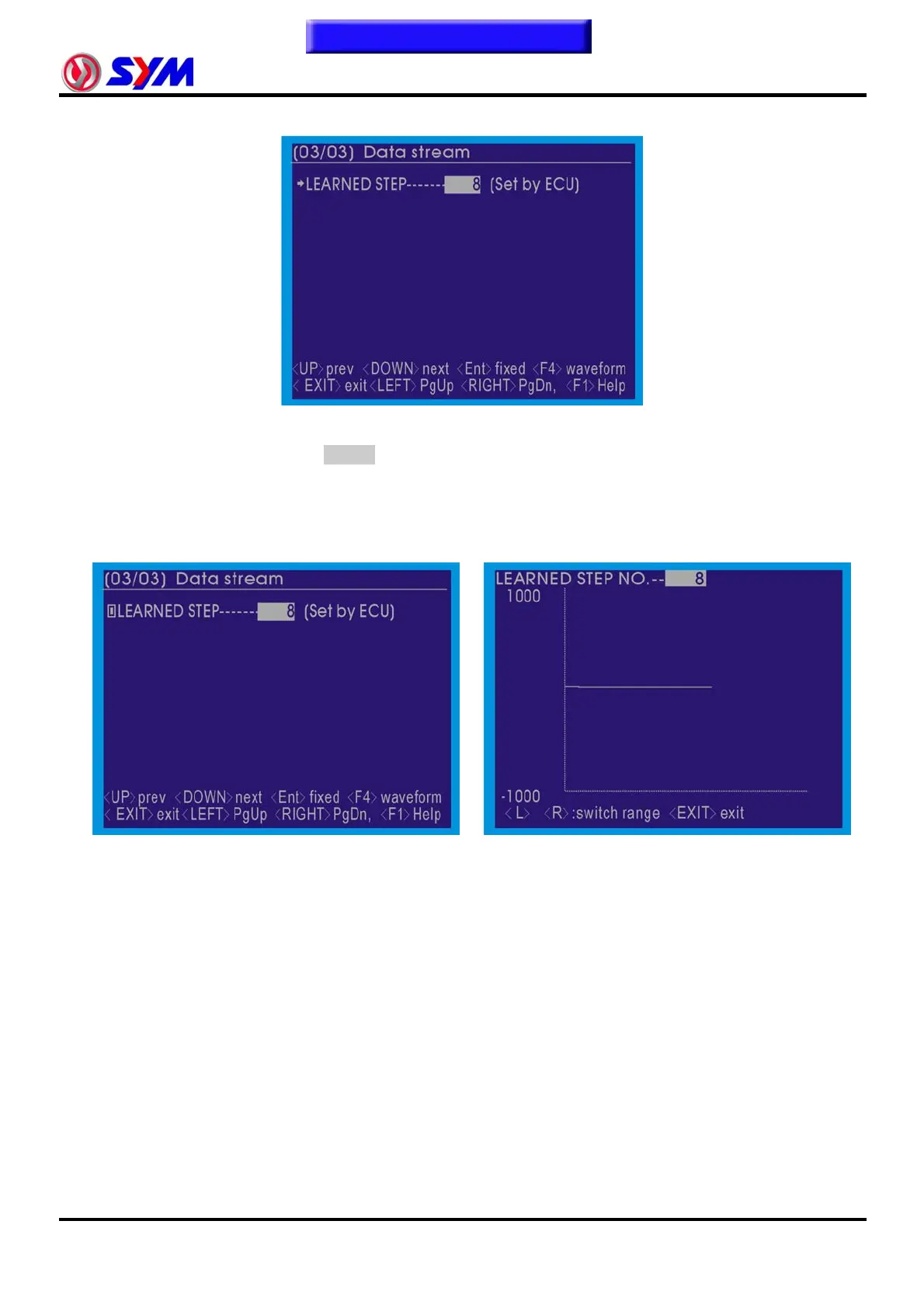 ● LEARNED STEP--------------- (Set by ECU) →Idle Air Control Valve stepper motor learning