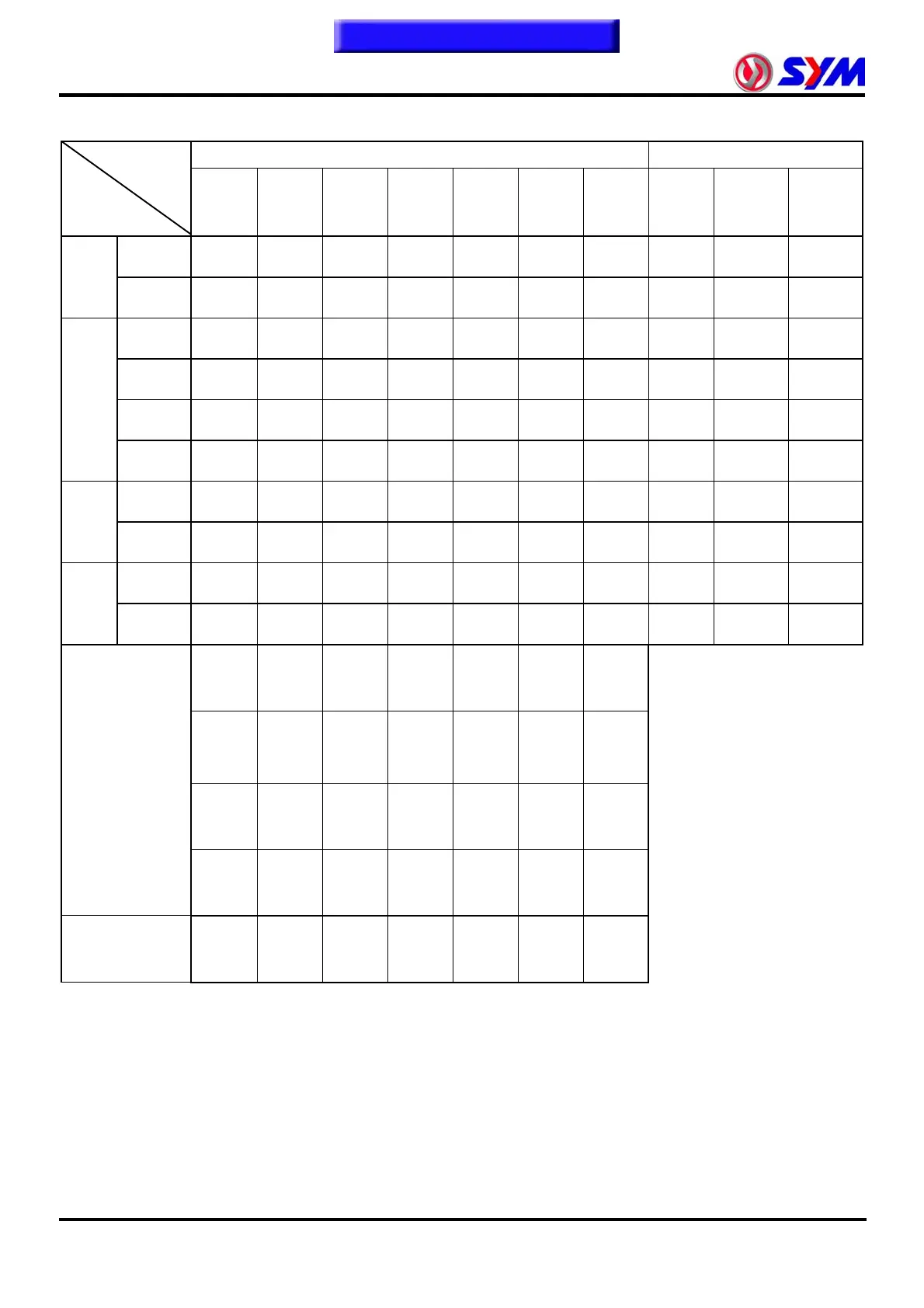 Notes: 1. Integrated test motorcycle, according to the "Comprehensive Maintenance list" implementation.