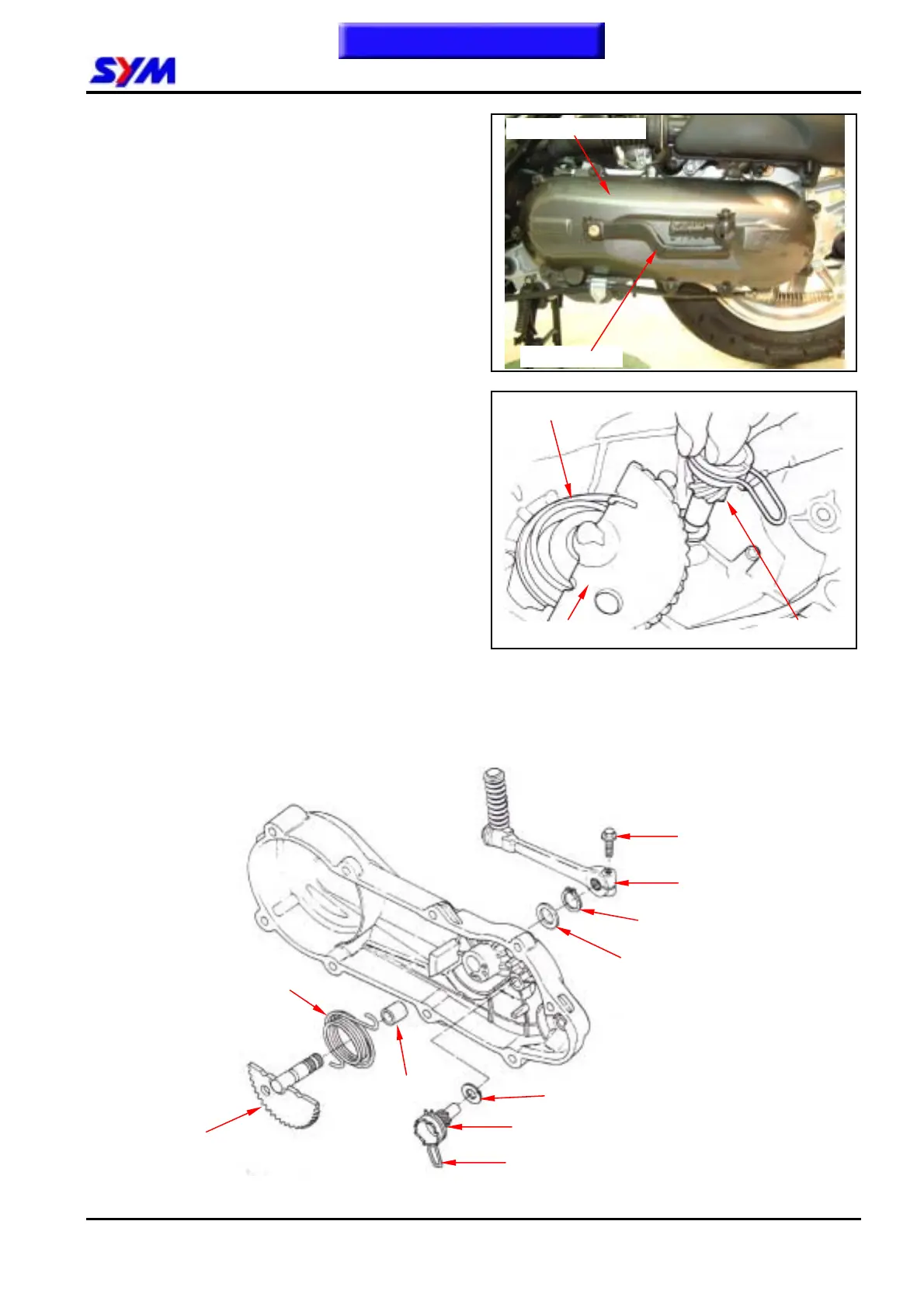 Remove the kick starter arm, kick starter spindle,