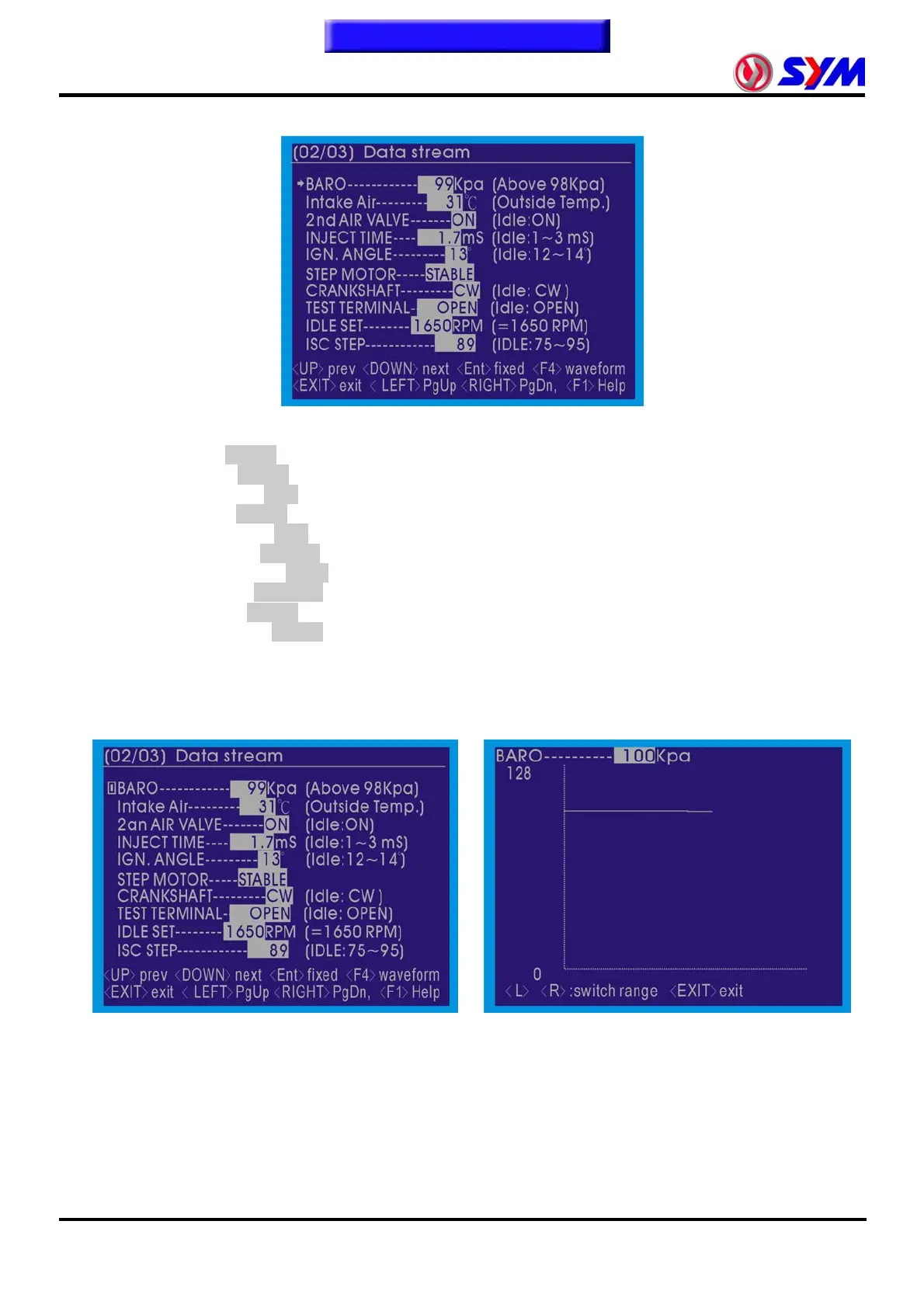 ● BARO------------ kPa (Above 98kPa) →Atmospheric pressure