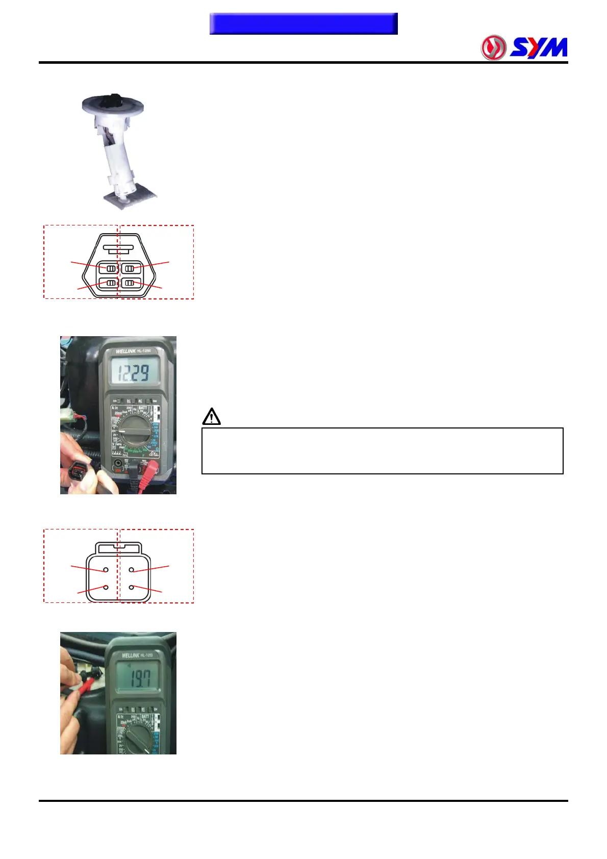 ● Use "volteg meter" DC stalls (DCV) to check fuel pump voltage.