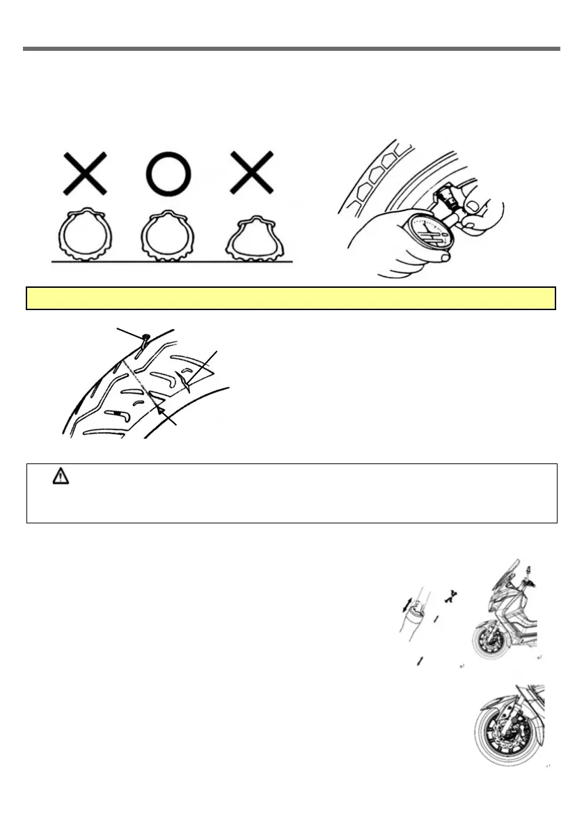 If a tire’s ground contacting curve is abnormal, check it with an air pressure gauge and inflate it to the
