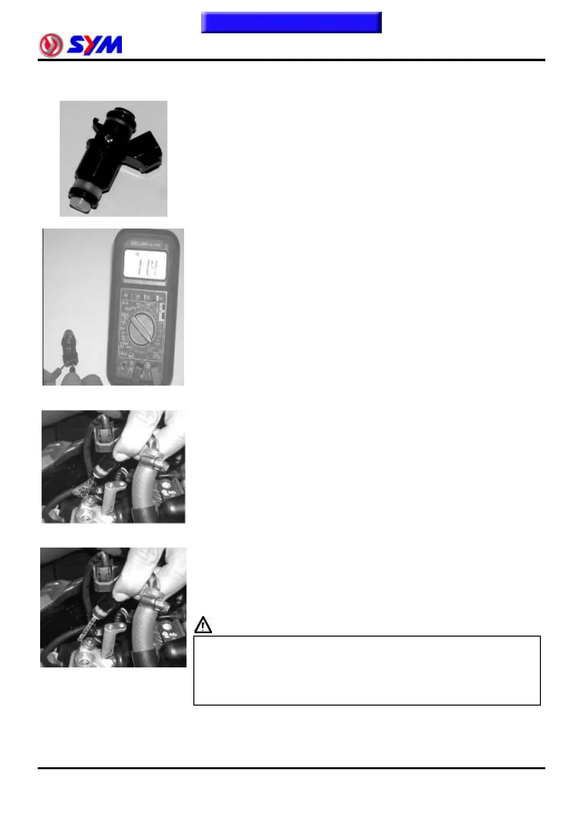 ● In the inspection injector fuel injection state, the outflow of gasoline,