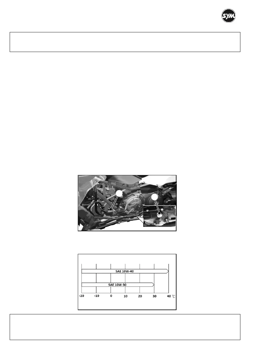The oil change should be done by an authorized SYM dealer. The genuine “SYMOIL” are designed and
