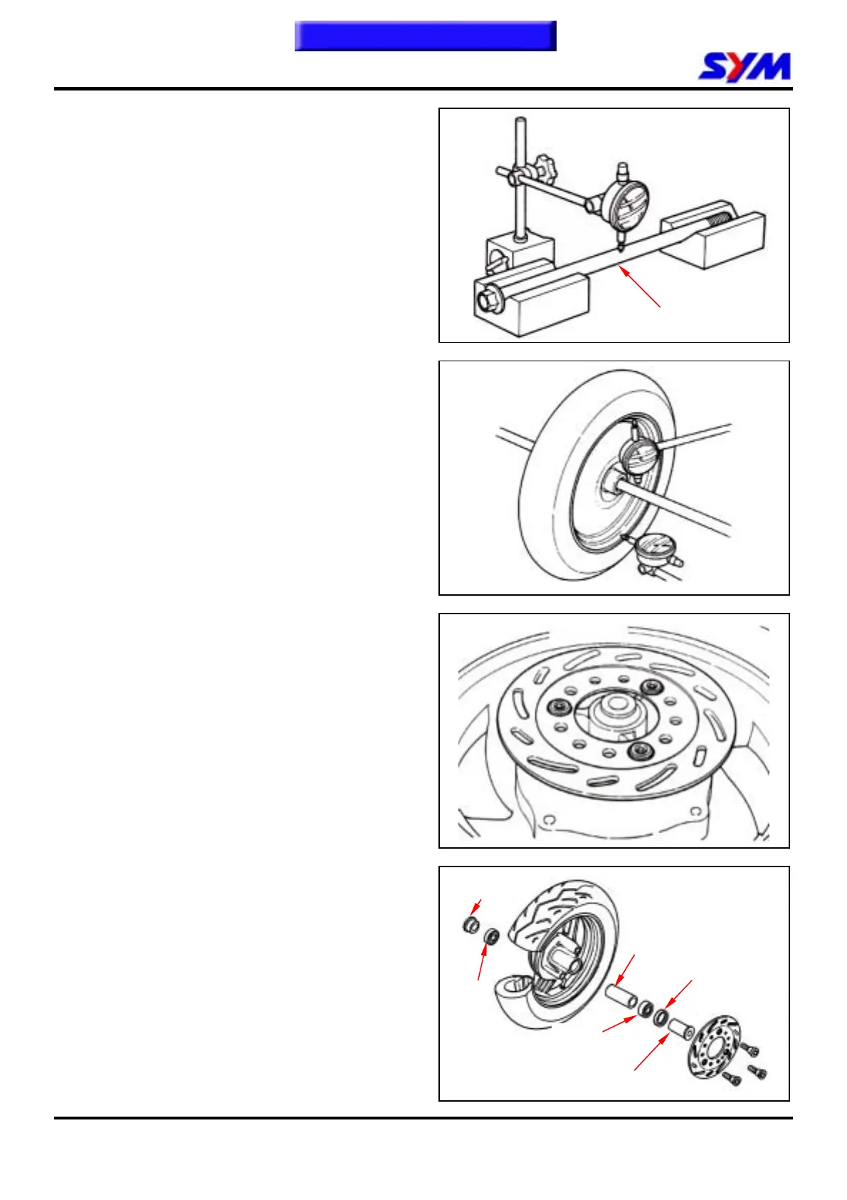 Turn the wheel with hand and measure its wobble