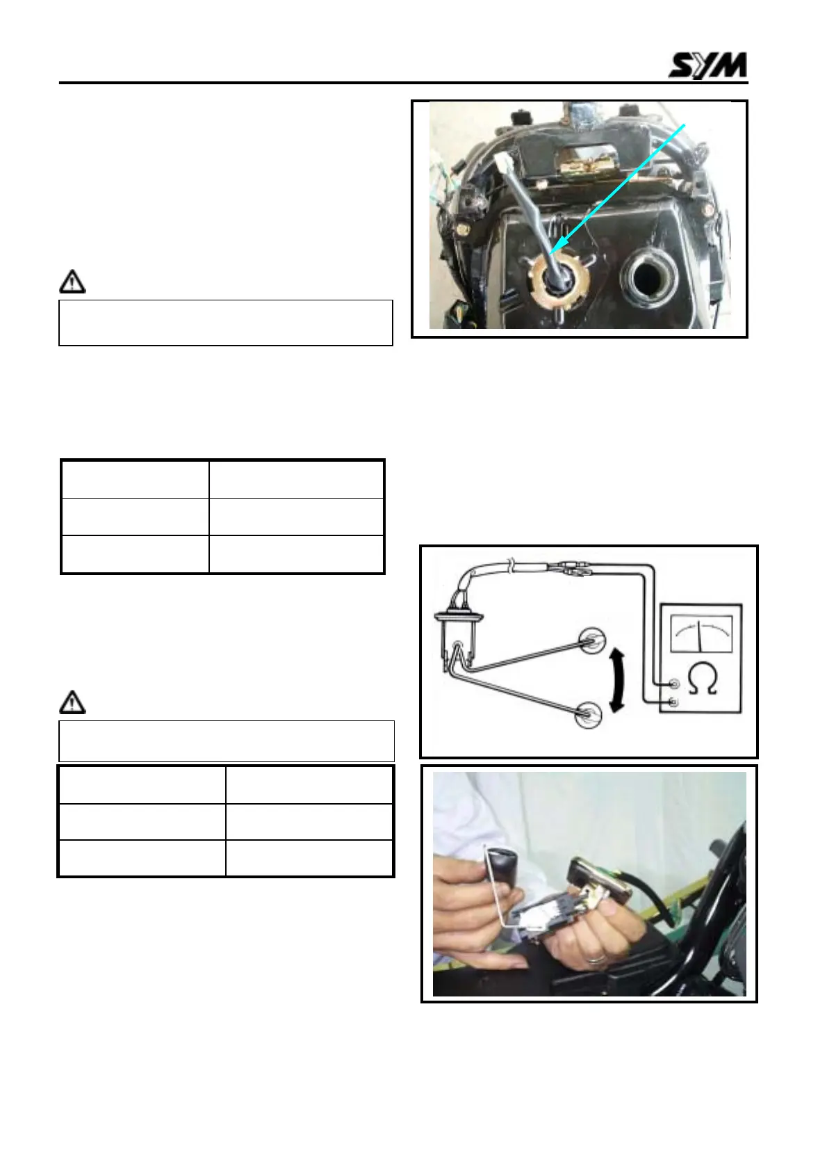 Float arm position Resistance value