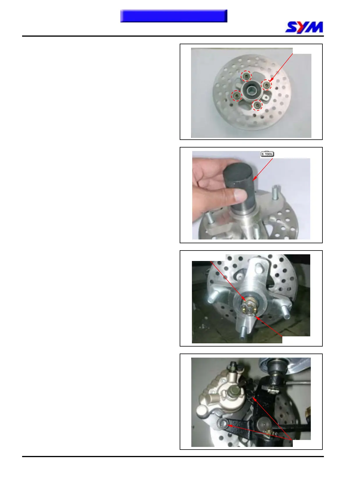 Install the front brake disk to the wheel hub.