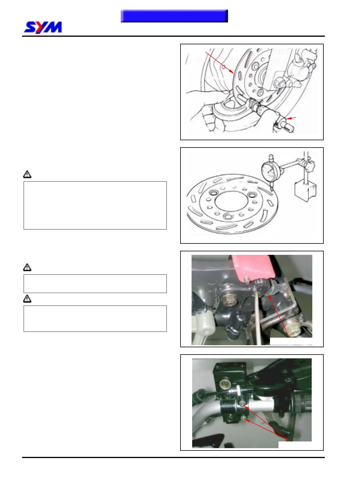 Visually check the brake disk for wear or break.