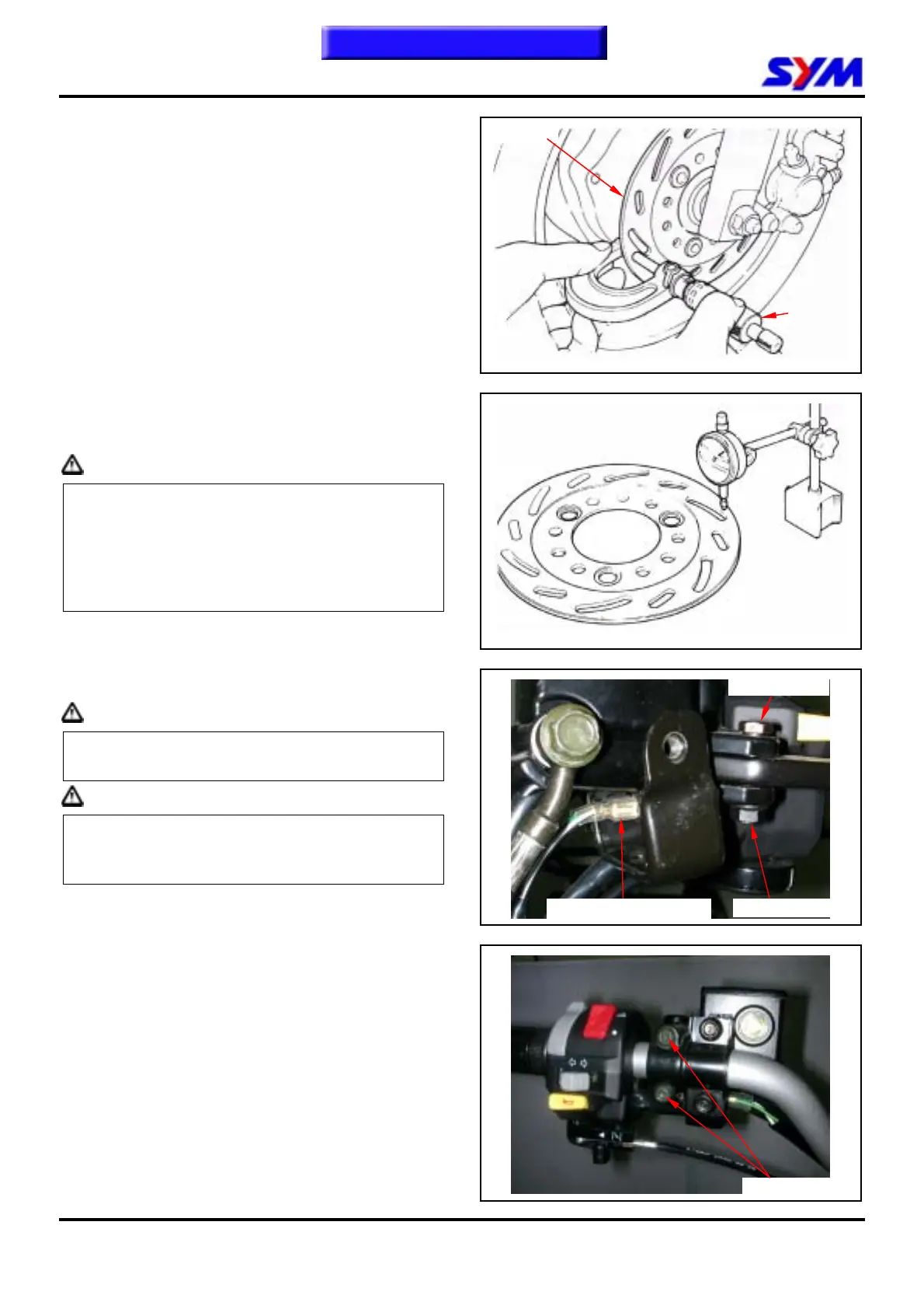 Visually check the brake disk for wear or break.