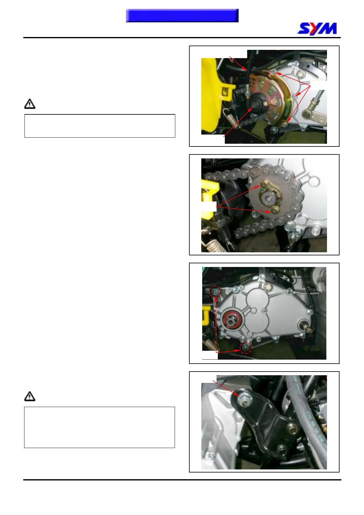Remove 3 bolts and remove drive chain protector.