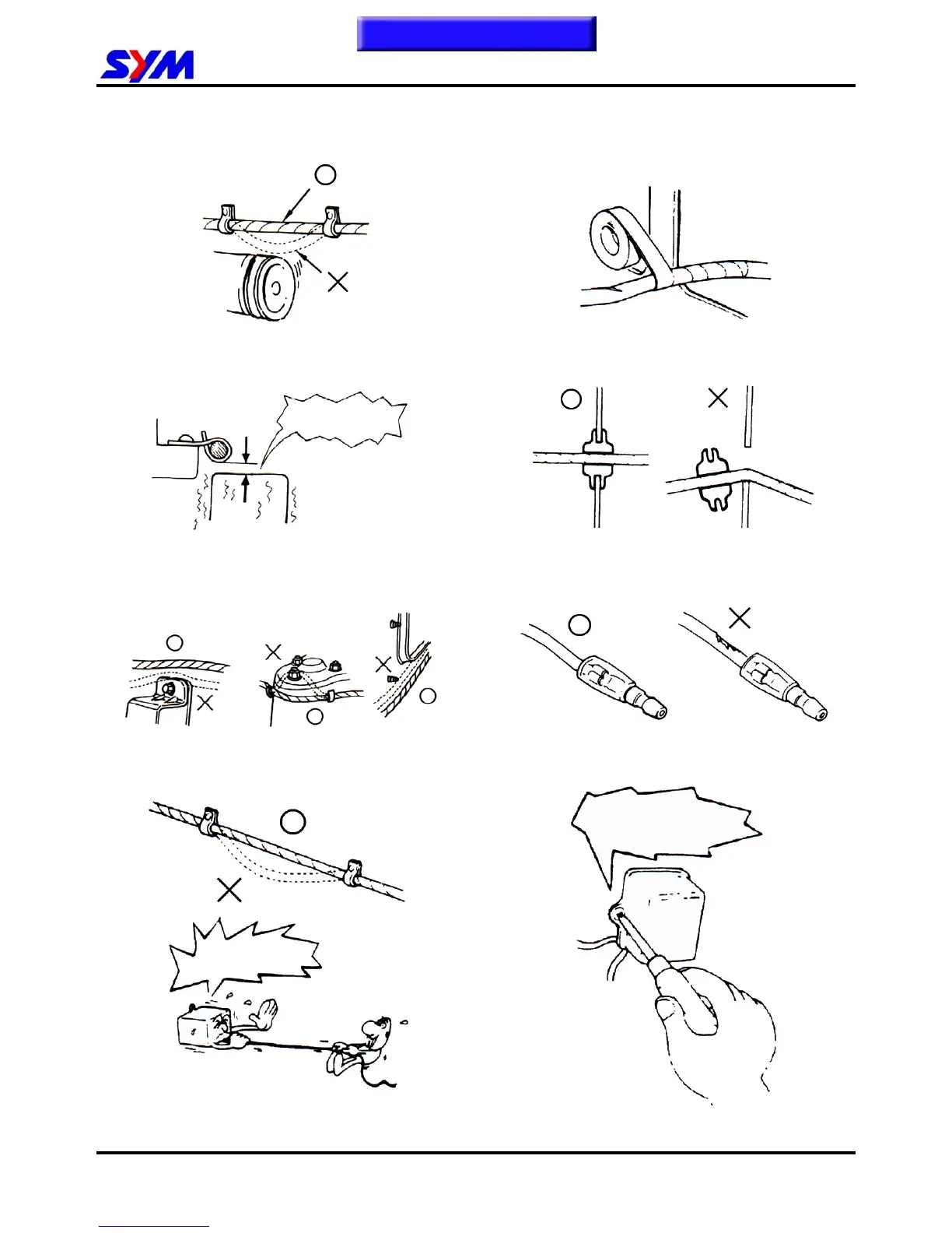 y Keep wire harnesses far away from the hot