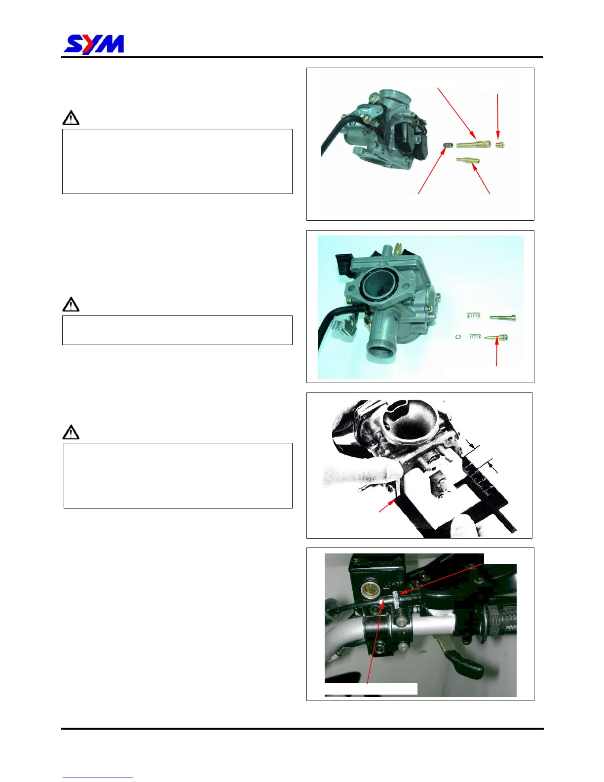 ˙ Throttle cable adjustment.