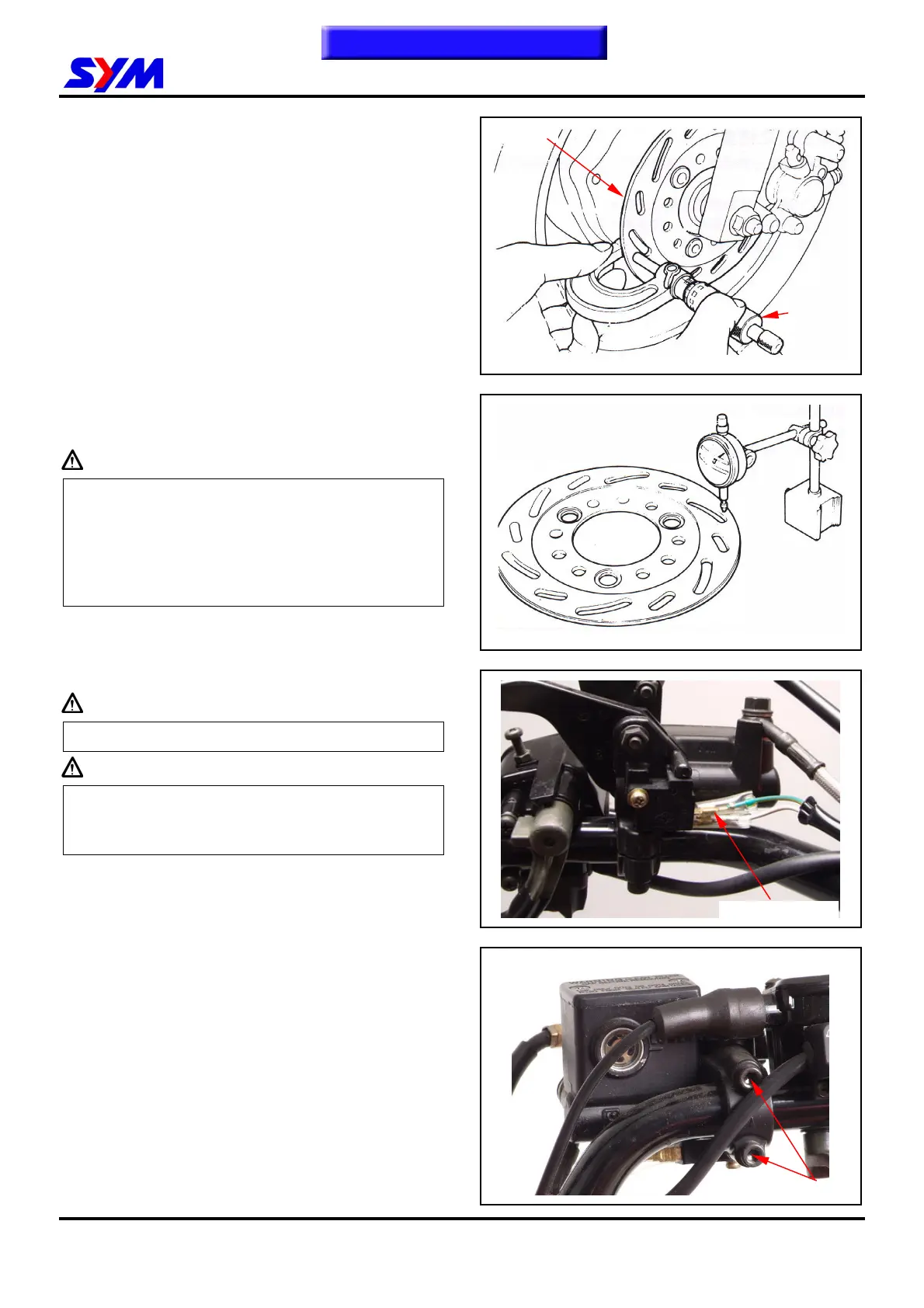 Visually check the brake disk for wear or spoilage.