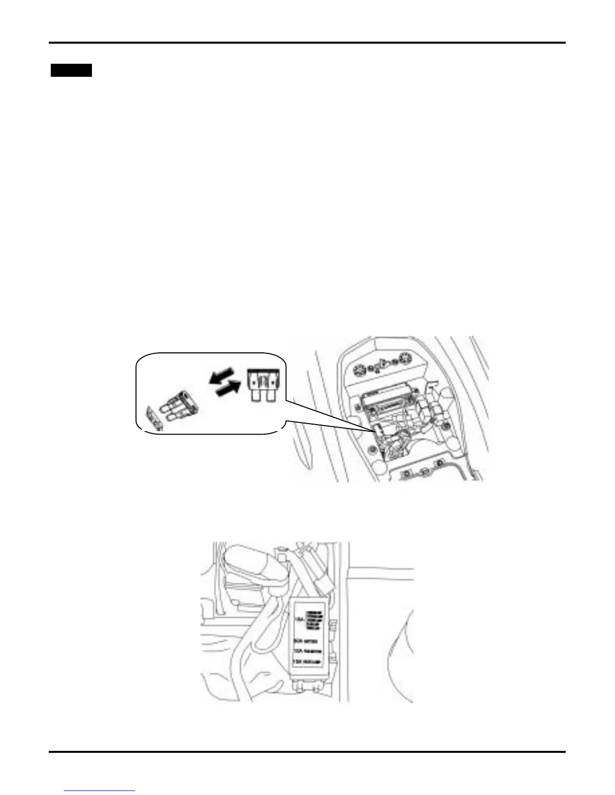 • Avoid spraying water directly on or around fuse box when washing the ATV.