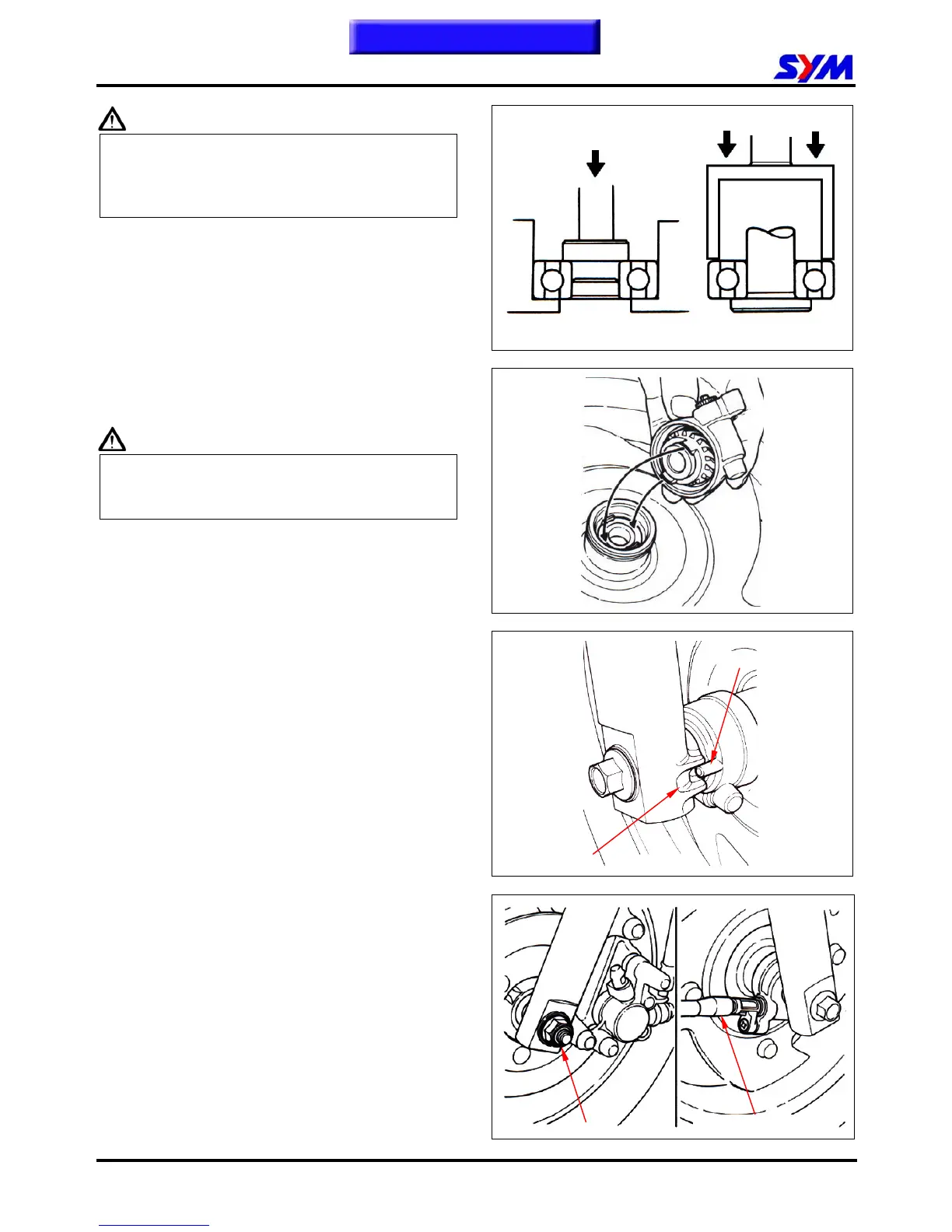 Install the front wheel axle from right cushion side.