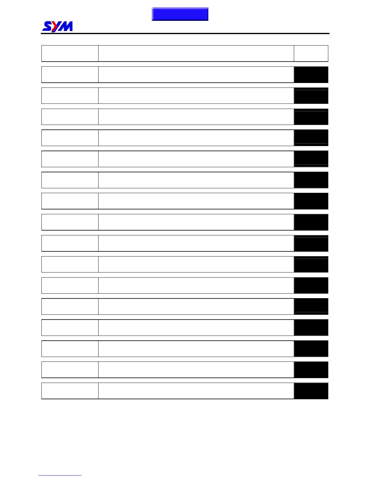 Sym RS-50 - Page Content Index; Table of Contents