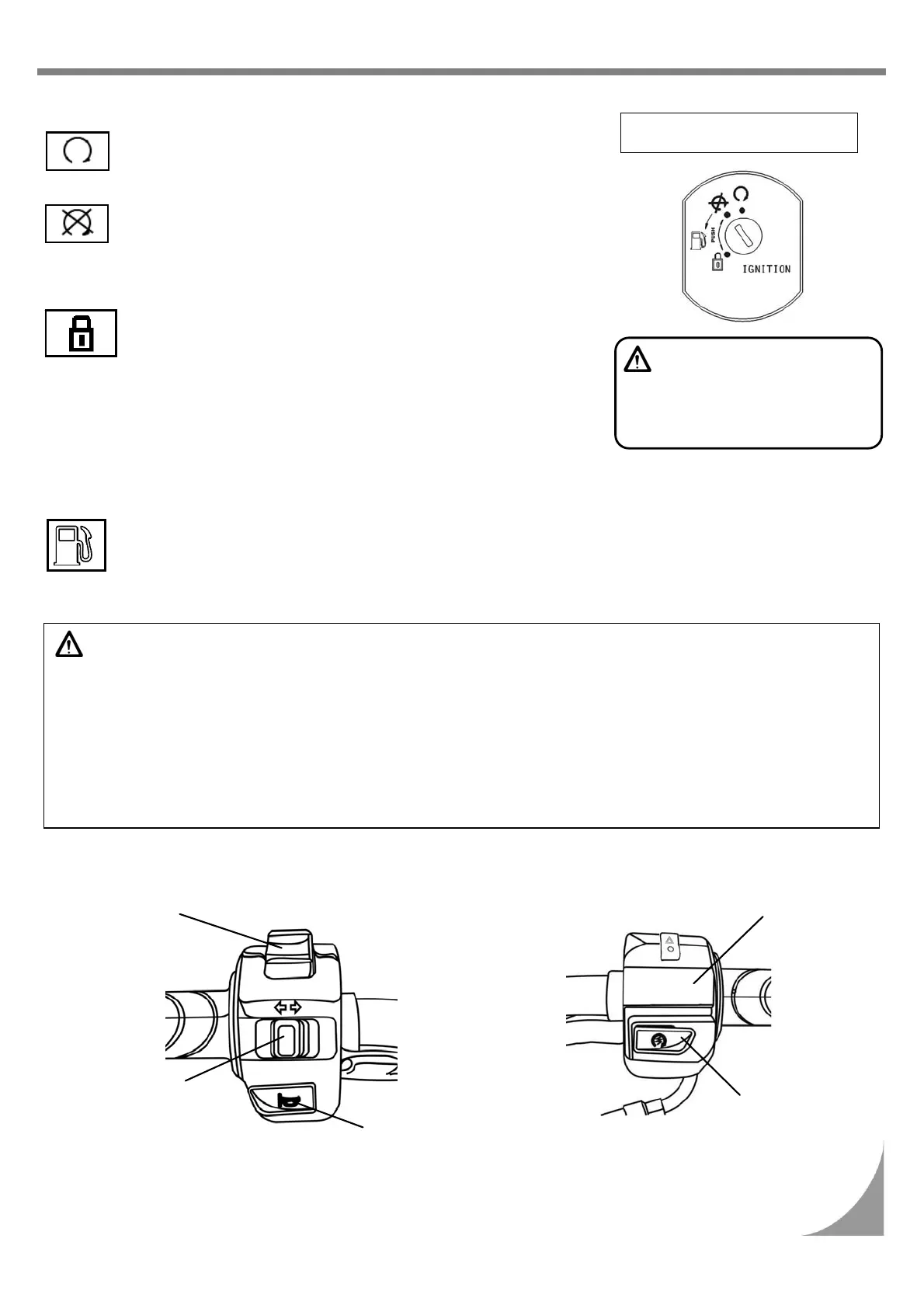 y Never operate the ignition switch key when the motorcycle is running. To turn the ignition switch