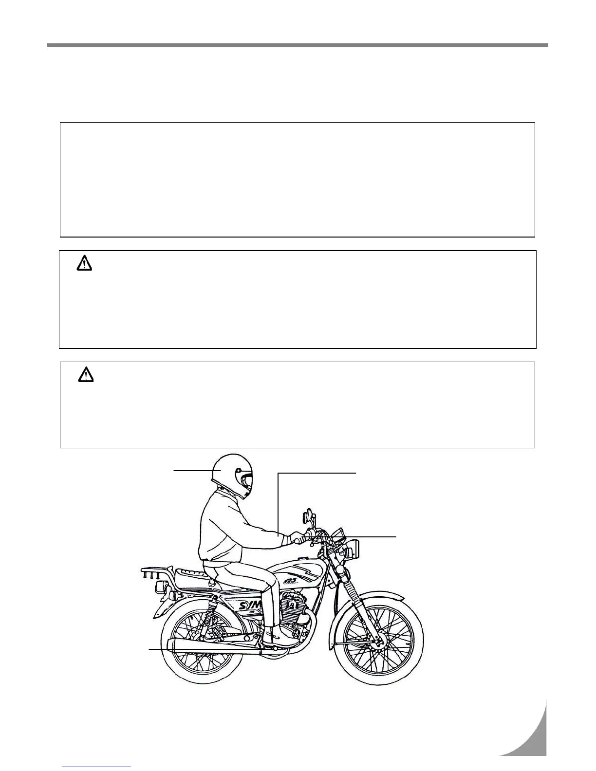 A modified motorcycle will not be covered by warranty, therefore, do not modify your motorcycle