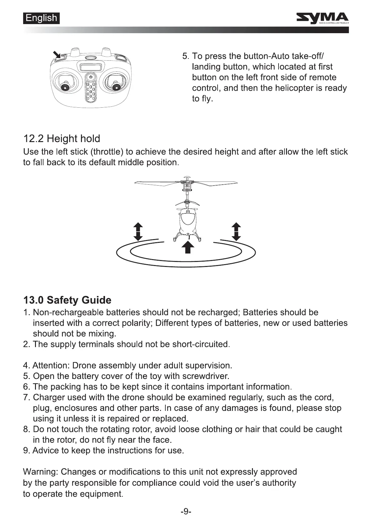 SYMA S107H-E - Height Hold Function; Additional Safety Guidelines