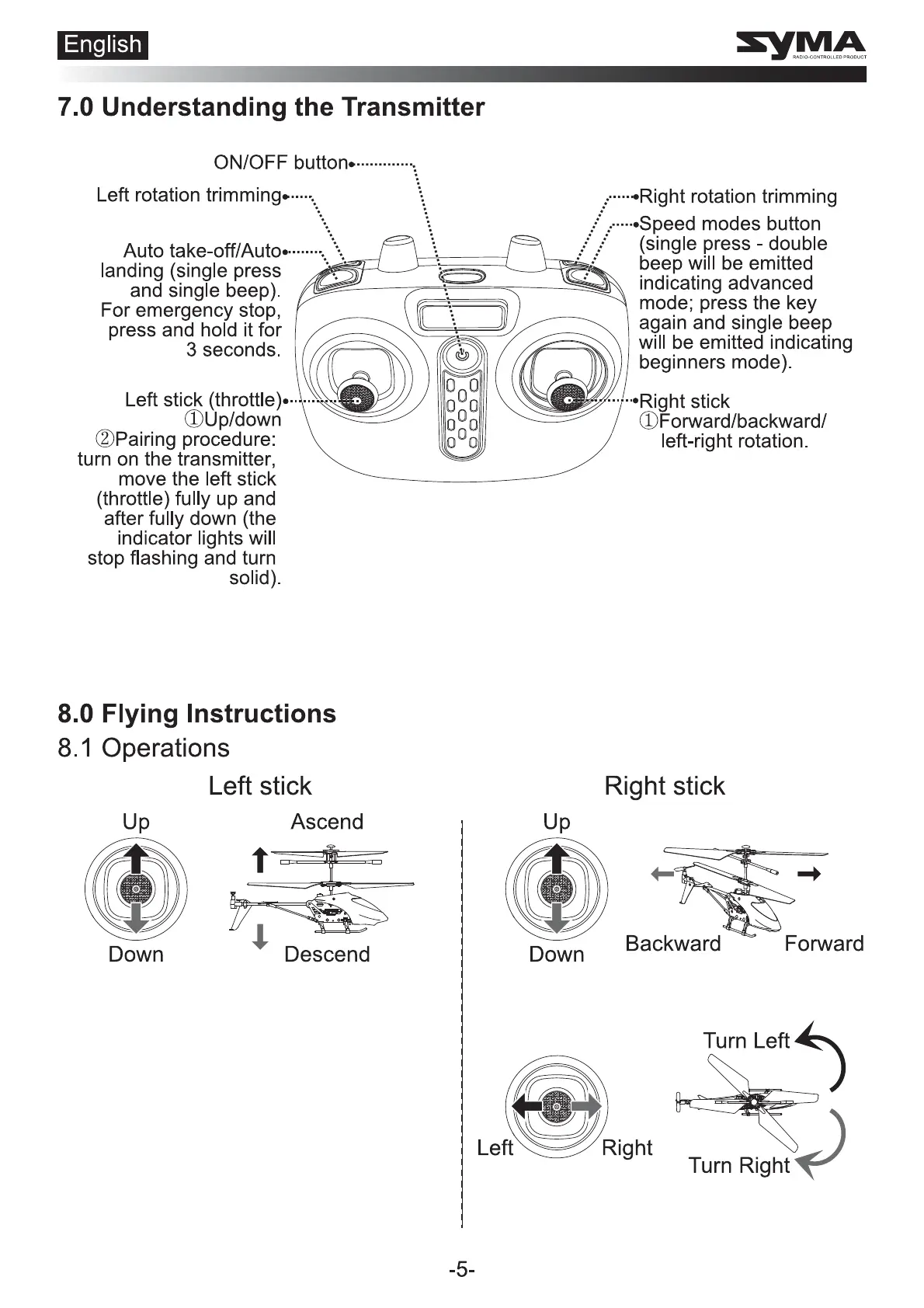 SYMA S107H-E - Transmitter Overview; Flying Instructions; Operations
