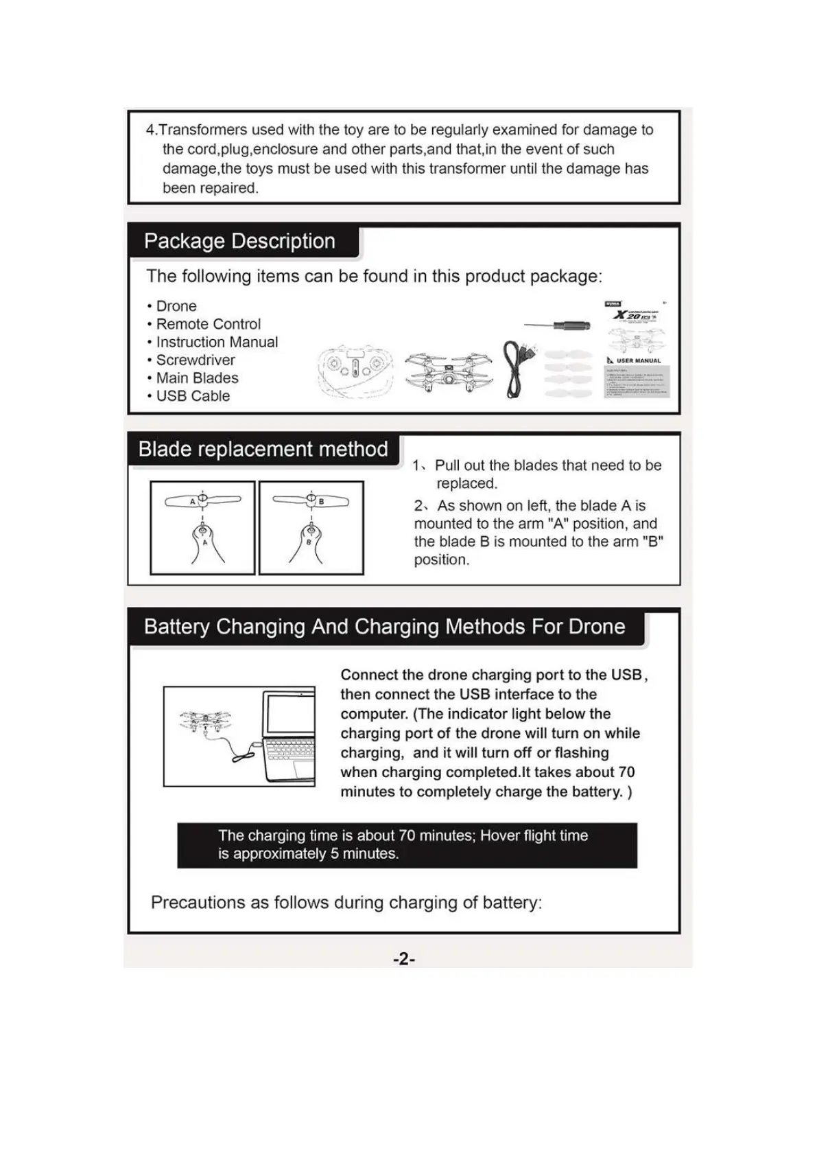 SYMA X 20 - Package Description; Included Items; Blade replacement method; Replacing Drone Blades