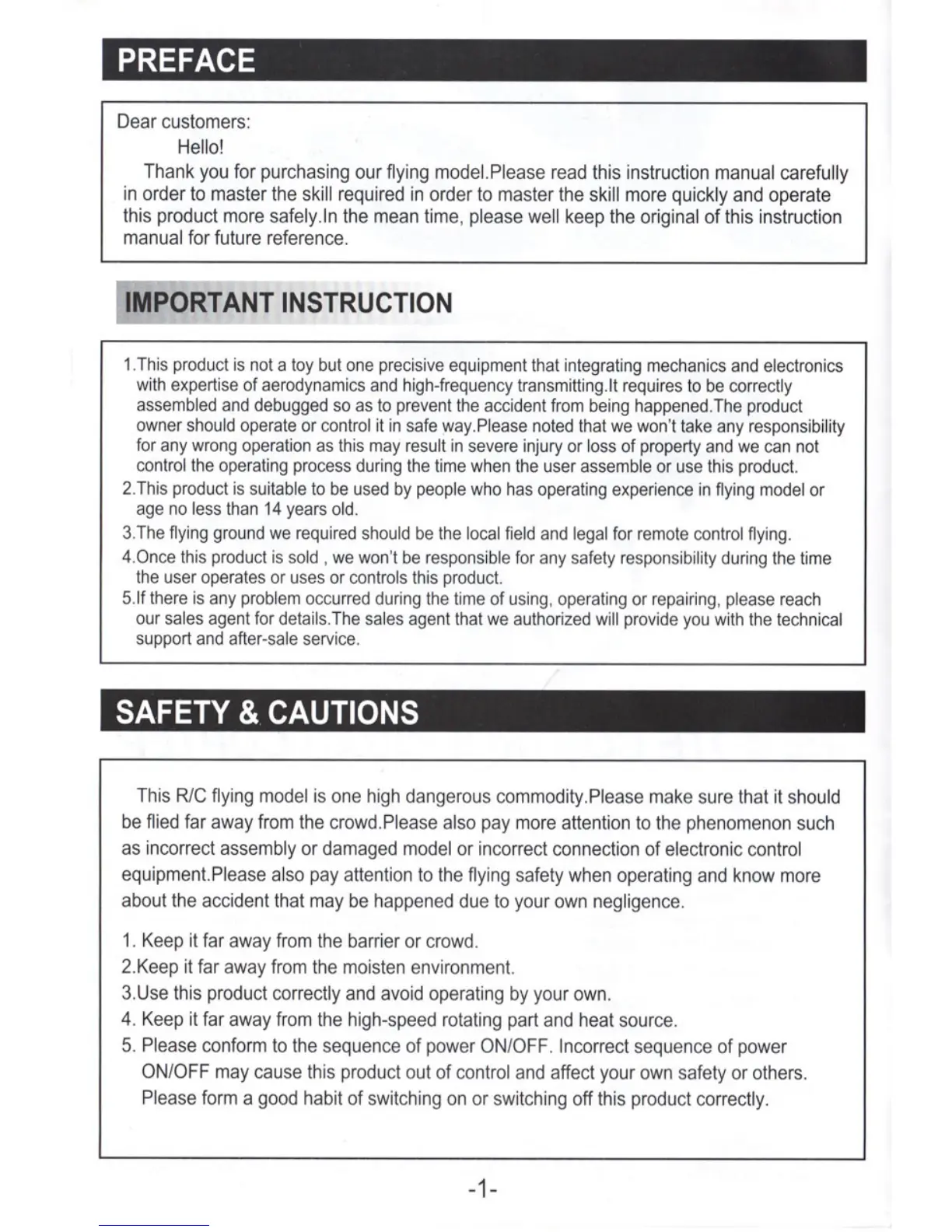 SYMA X3 - PREFACE; IMPORTANT INSTRUCTION; SAFETY & CAUTIONS