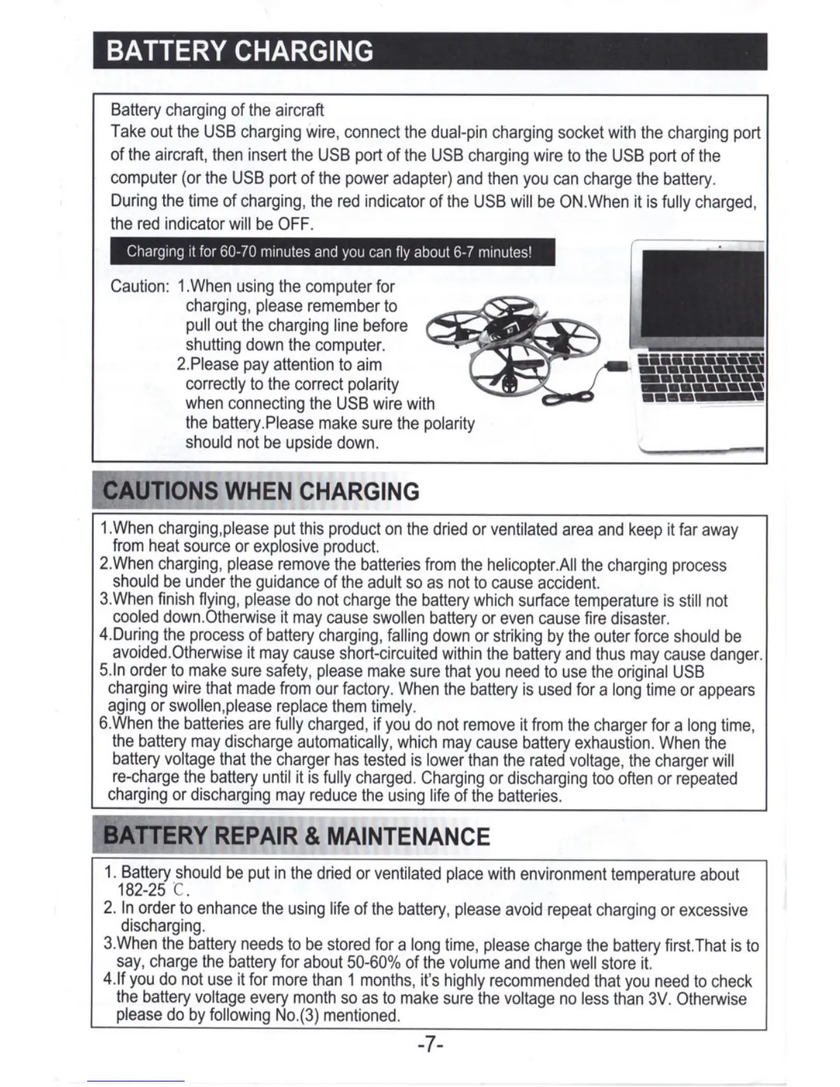 SYMA X3 - BATTERY CHARGING; Caution; CAUTIONS WHEN CHARGING