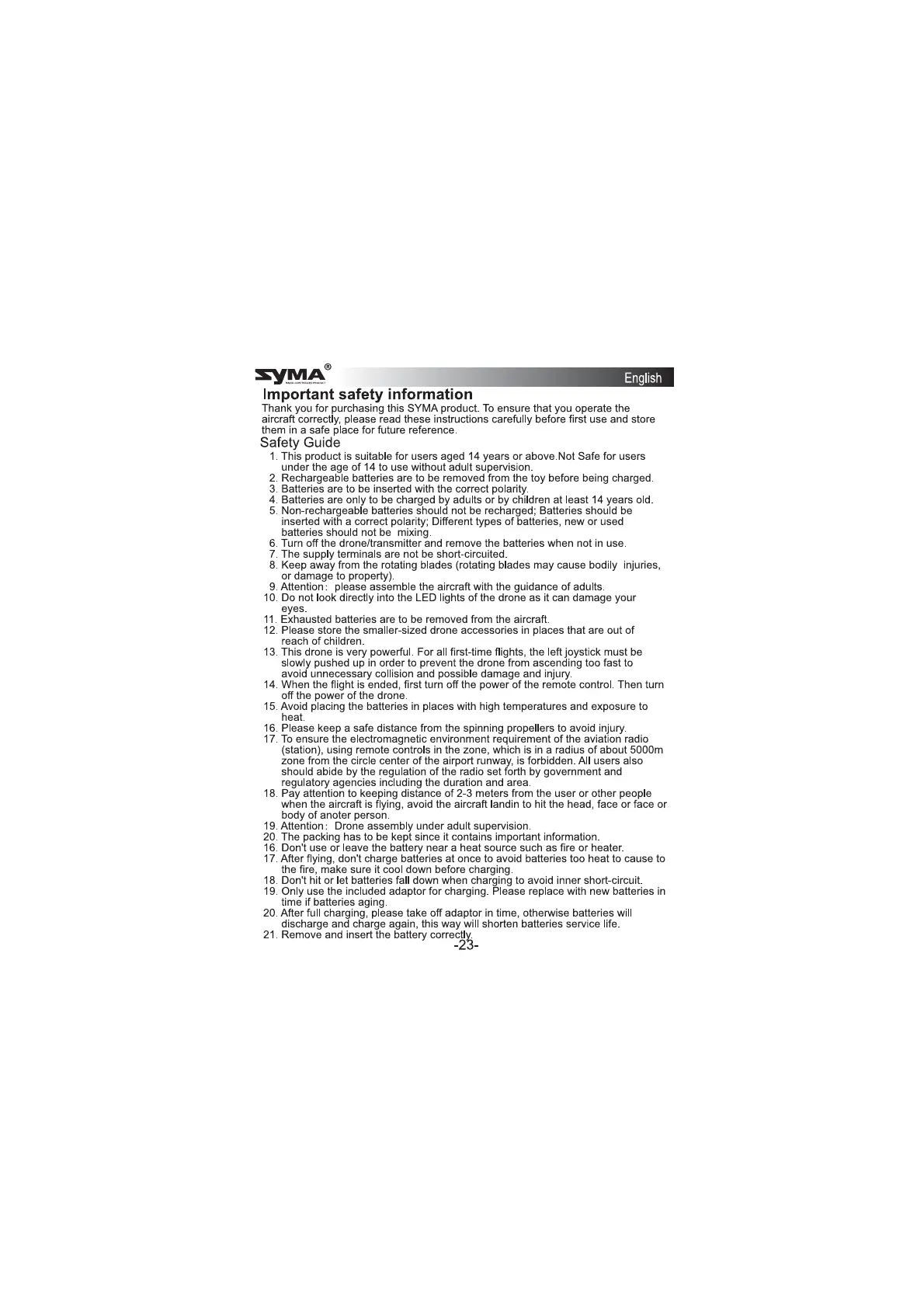 SYMA X500Pro - Important Safety Information and Guide; Safety Guide for Users
