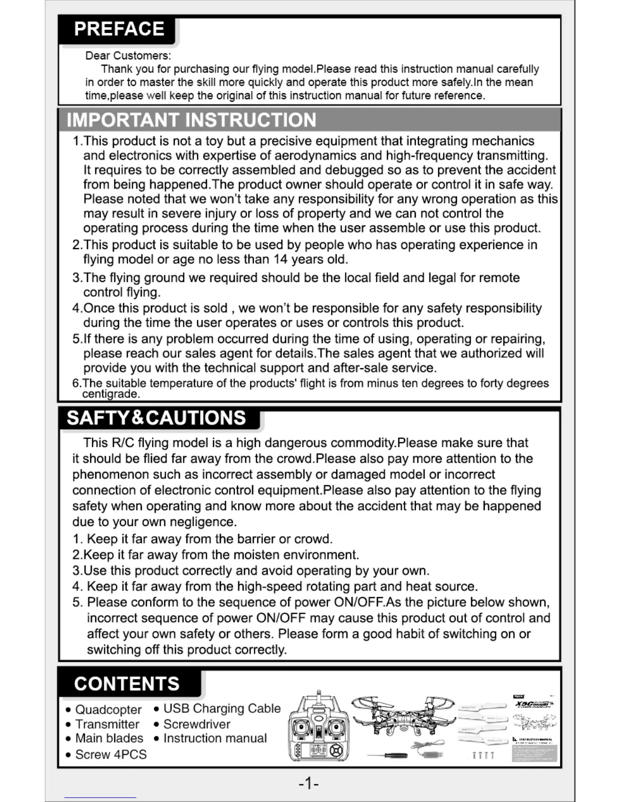 SYMA X5C Explorers - Important Instructions; Product is Precision Equipment; Age and Experience Requirements; Safety & Cautions