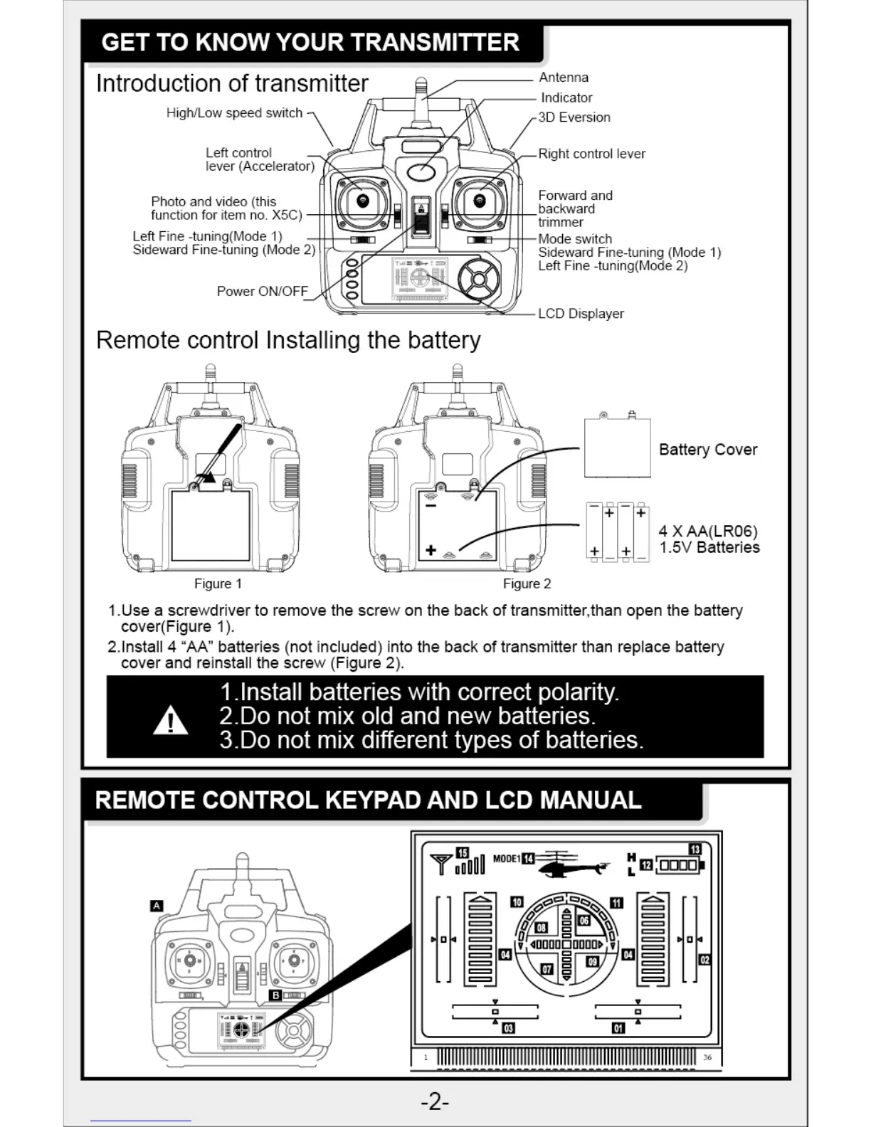 SYMA X5C Explorers - Transmitter Overview; Transmitter Controls