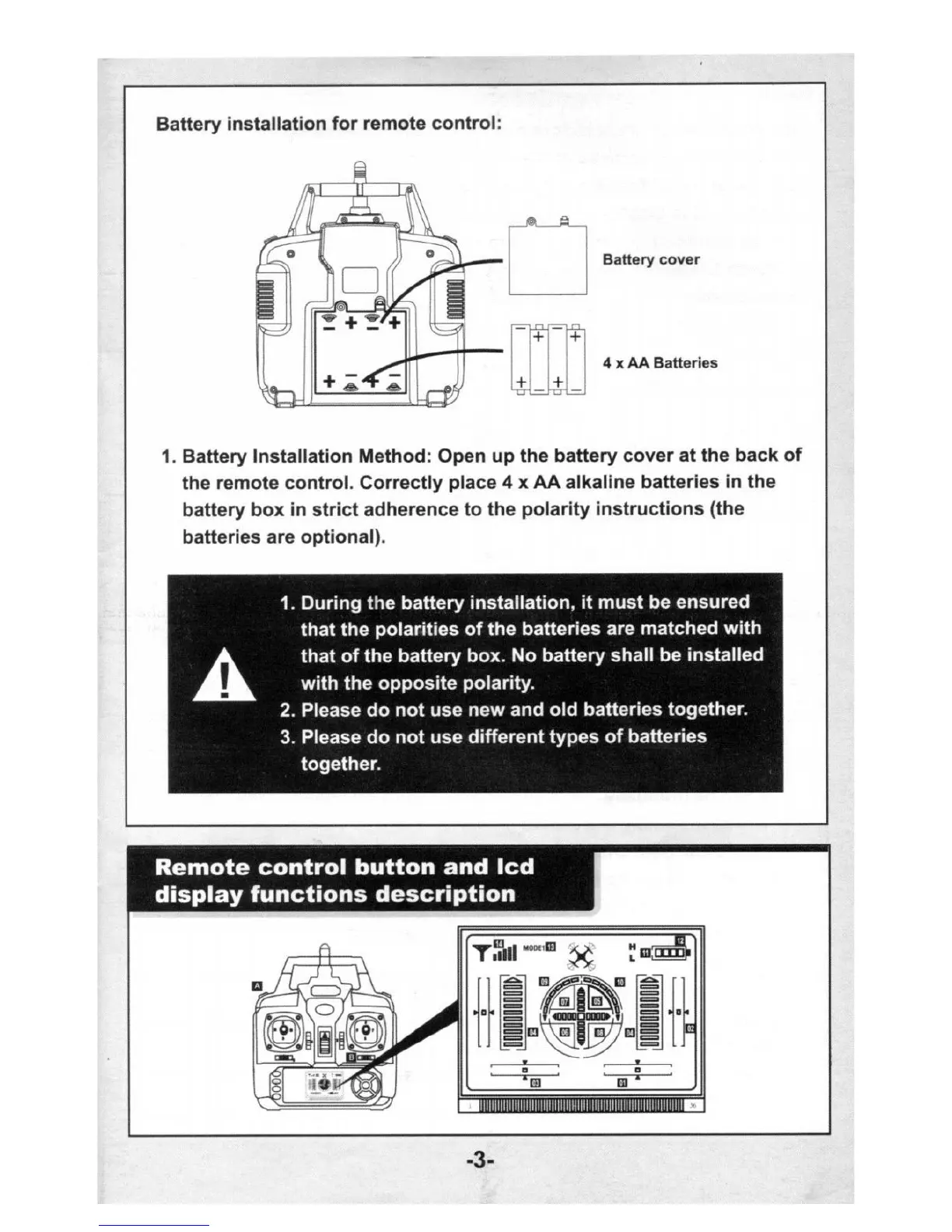 SYMA X5HW - Remote Control Battery Installation; Battery Installation Method; Remote Control Display and Buttons