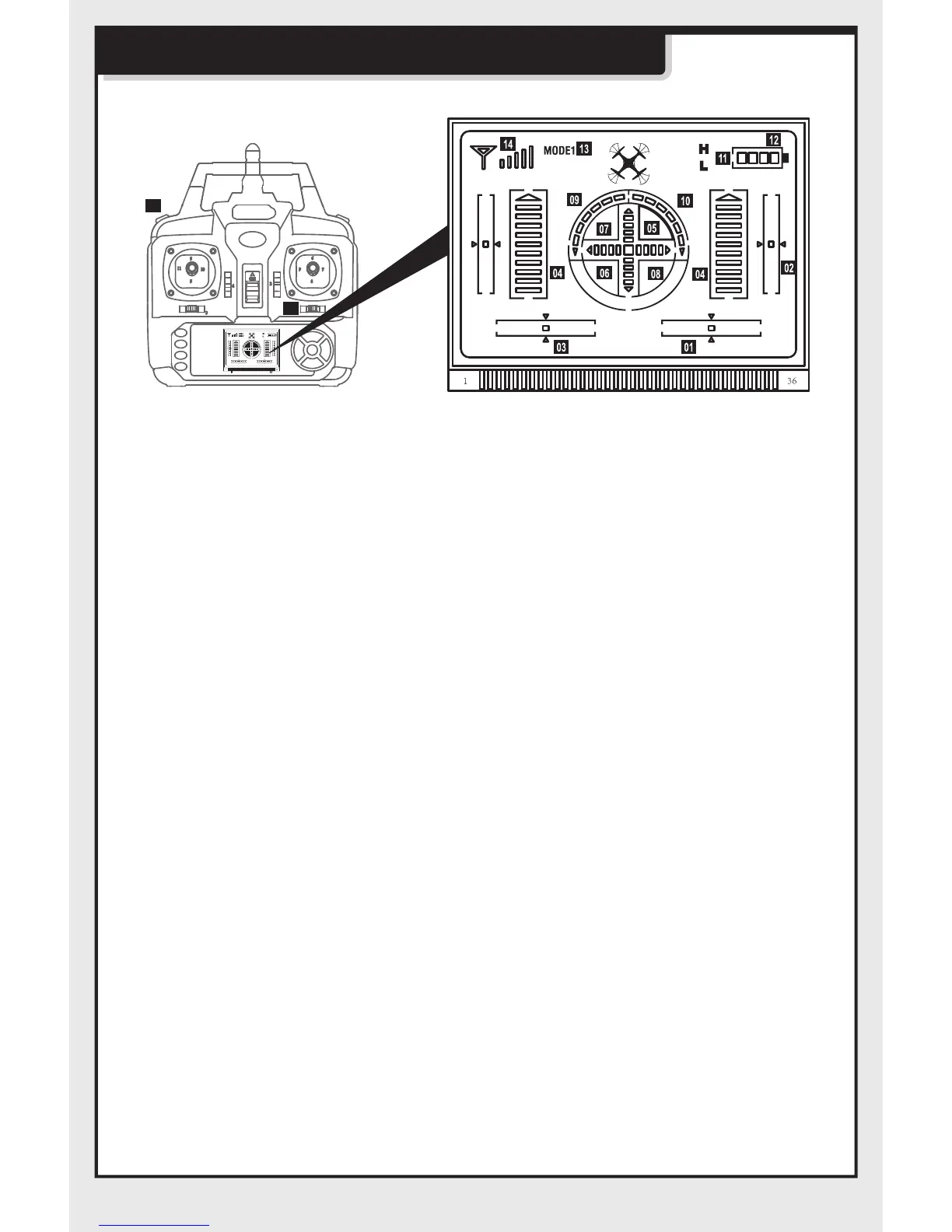 08.Turn left: Pull left function lever to left, it will be higher, than quadcopter