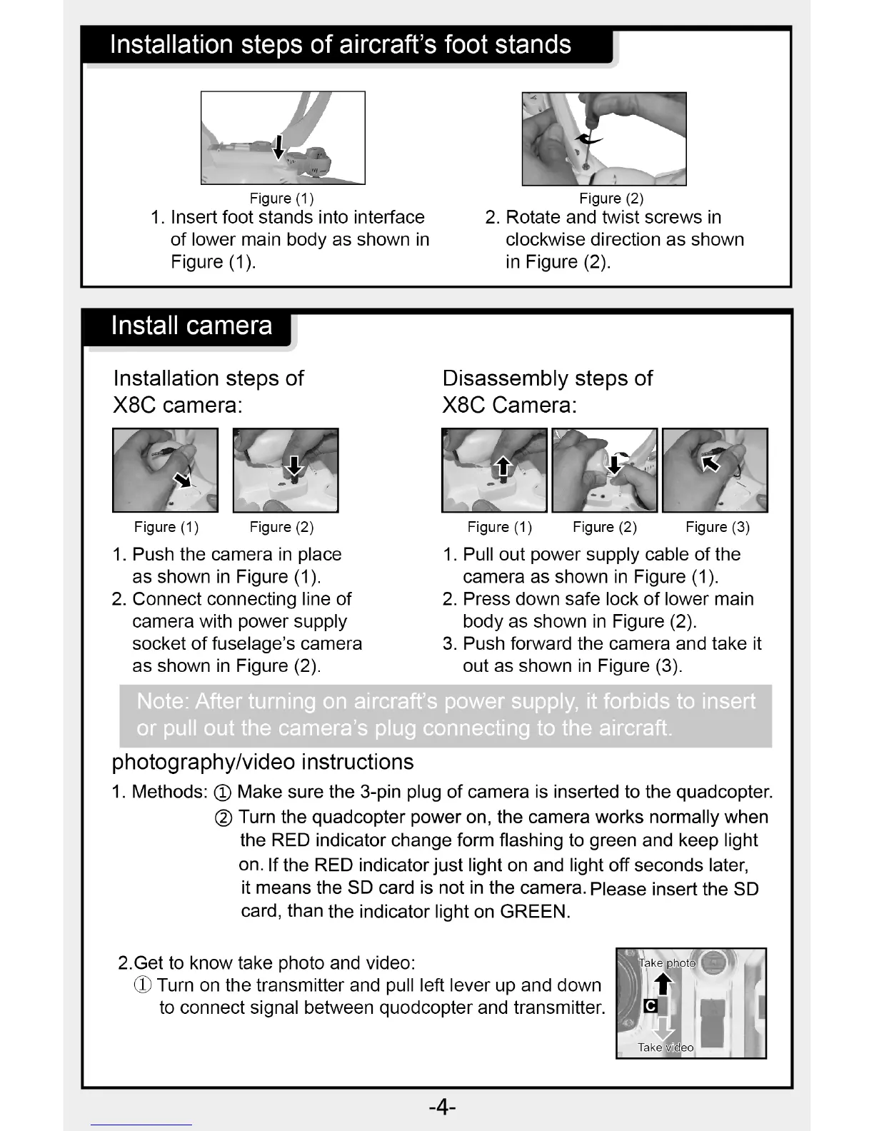 Methods: 0 Make sure the 3-pin plug of camera is inserted to the quadcopter.