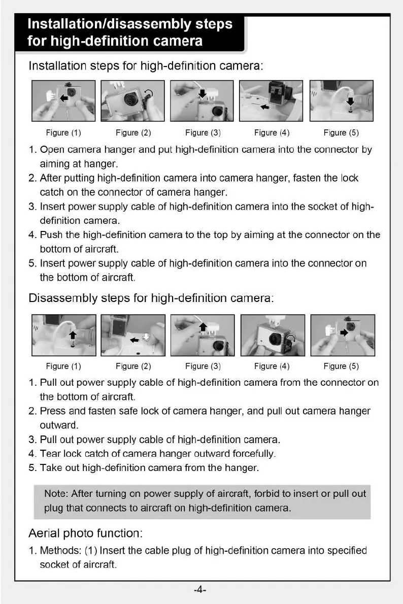 Note: After turning on power supply of aircraft, forbid to insert or pull out